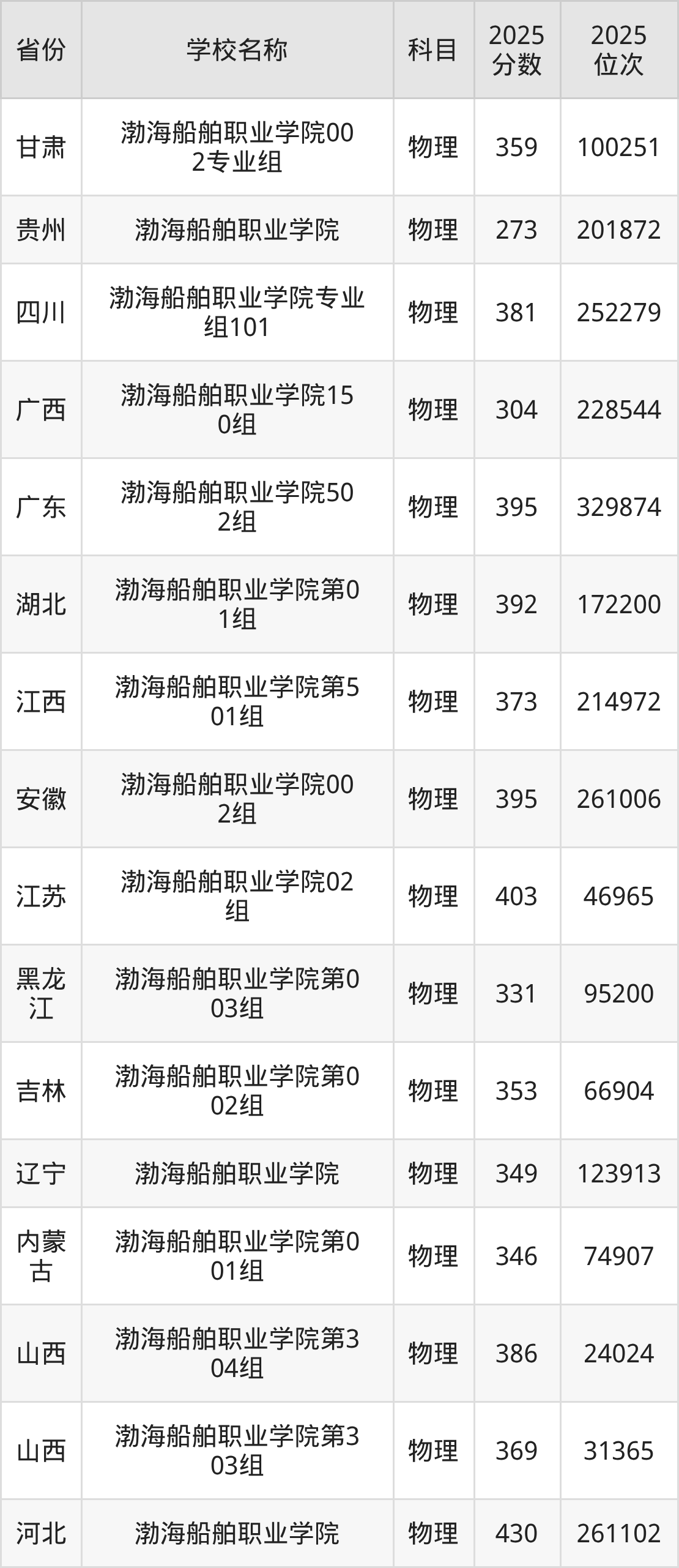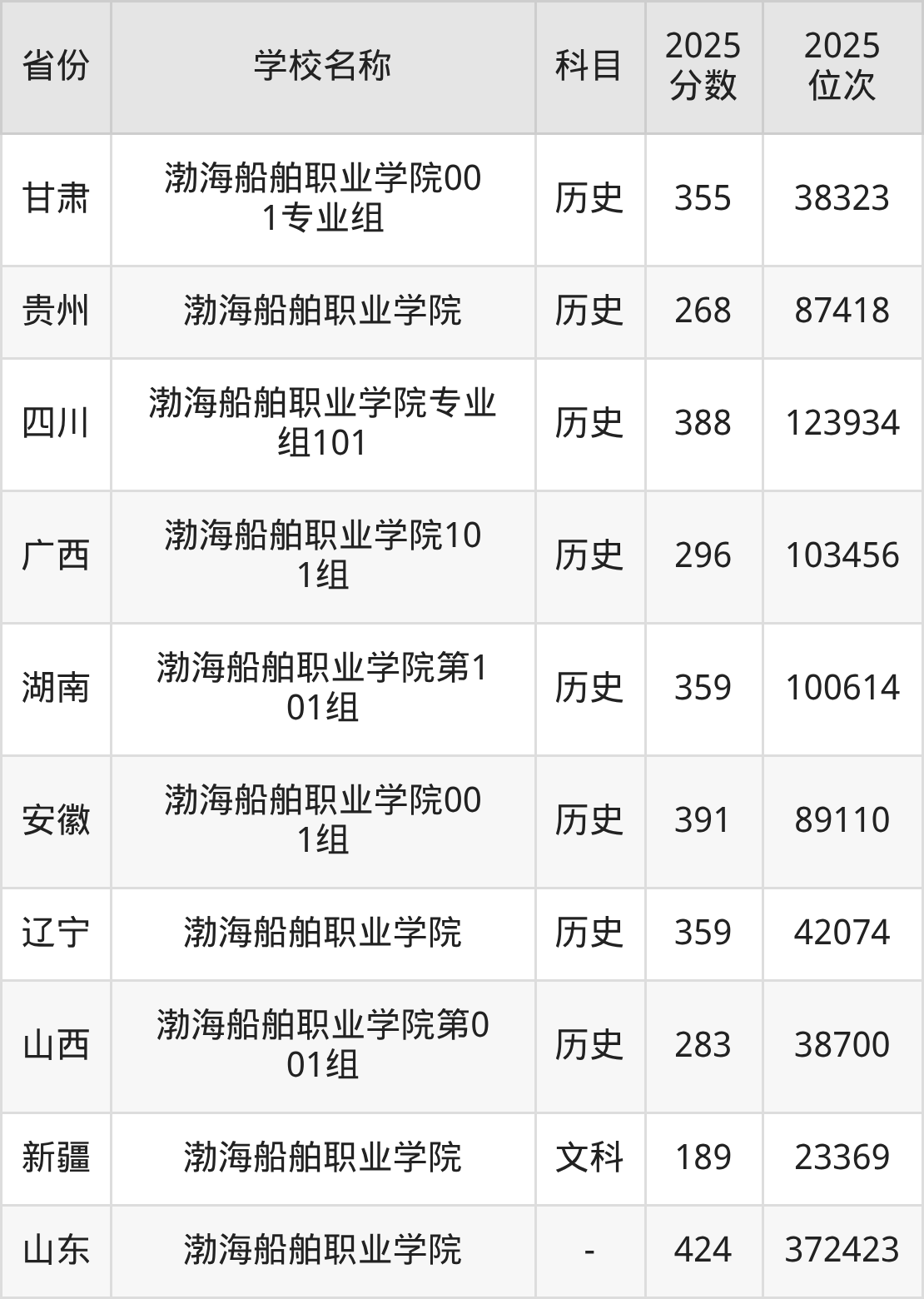 一、2025渤海船舶职业学院录取分数线
