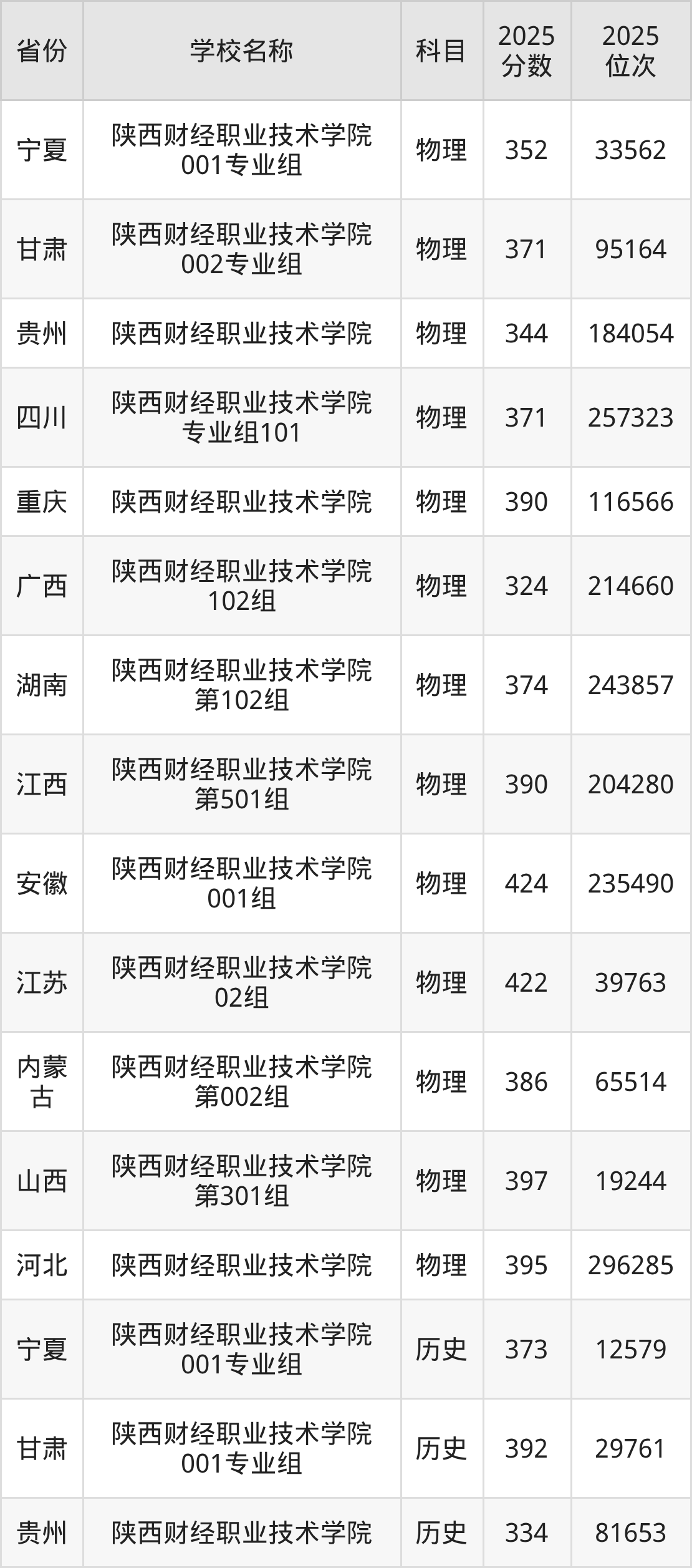 2025年陕西财经职业技术学院在全国各省专科的最低录取分数线在232~458分之间。安徽物理类高考生最低424分能上陕西财经职业技术学院、山东高考生最低422分能上陕西财经职业技术学院……下文将展示陕西财经职业技术学院在全国15个高考省份中的专科最低投档录取分汇总!