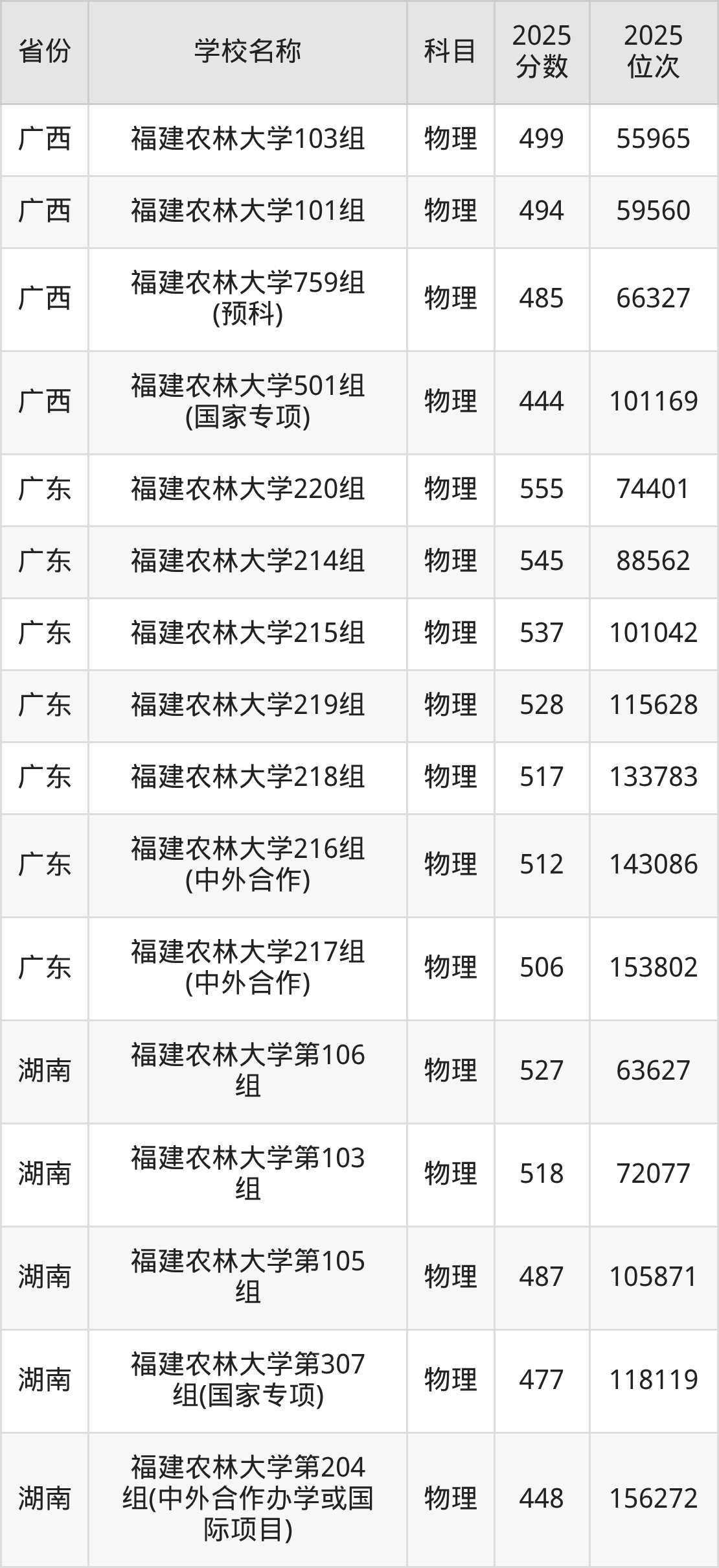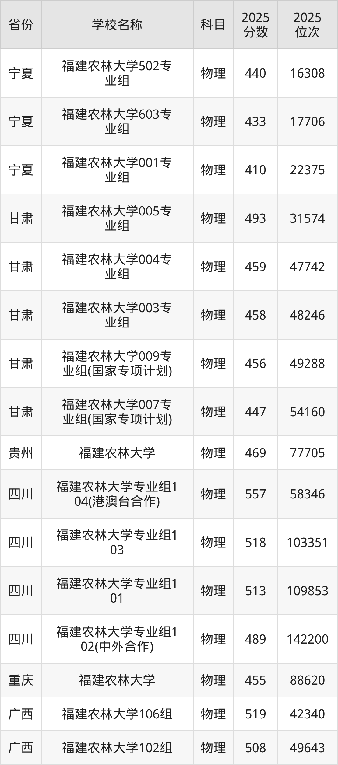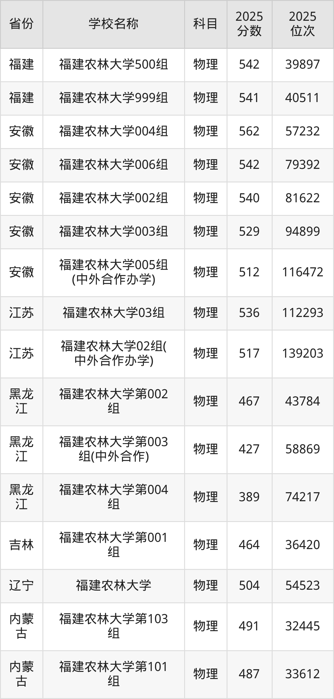 福建农林大学2025年有3个专业组面向福建省内首选了物理科目的考生招生:
