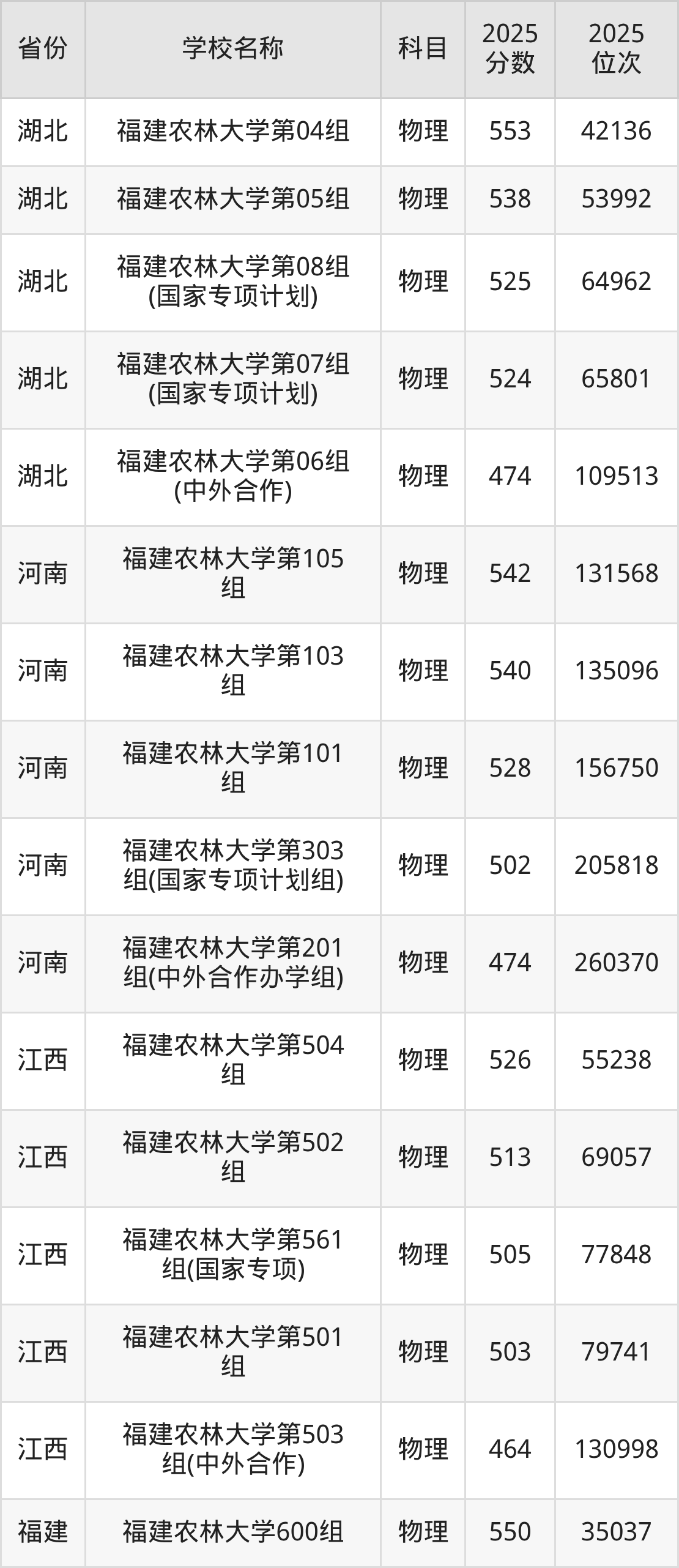 可见,福建农林大学的不同专业组,在“招生专业、录取分数线”等方面有较大区别。物理类专业组之间的分数线差距高达9分、历史类专业组之间的分数线差距高达5分。