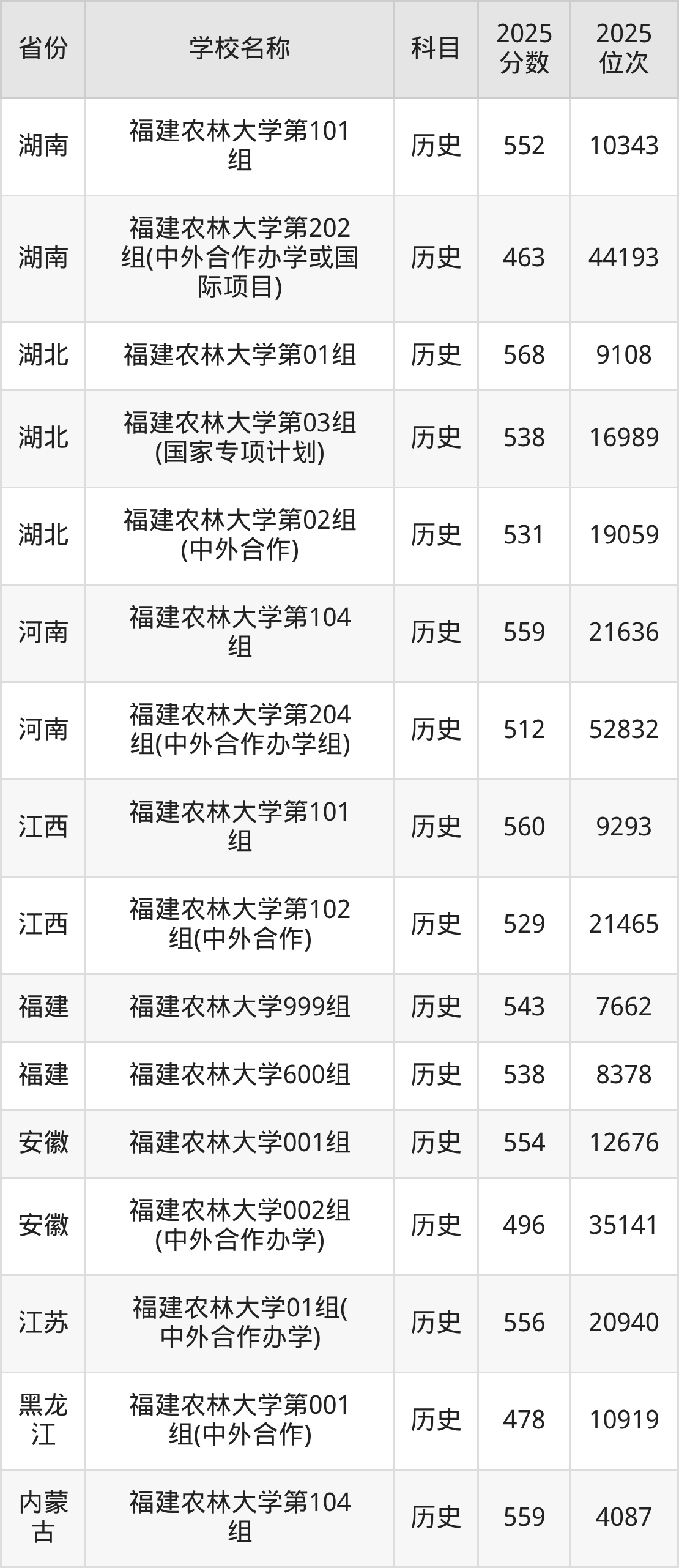 福建农林大学2025年有2个专业组面向福建省内首选了历史科目的考生招生: