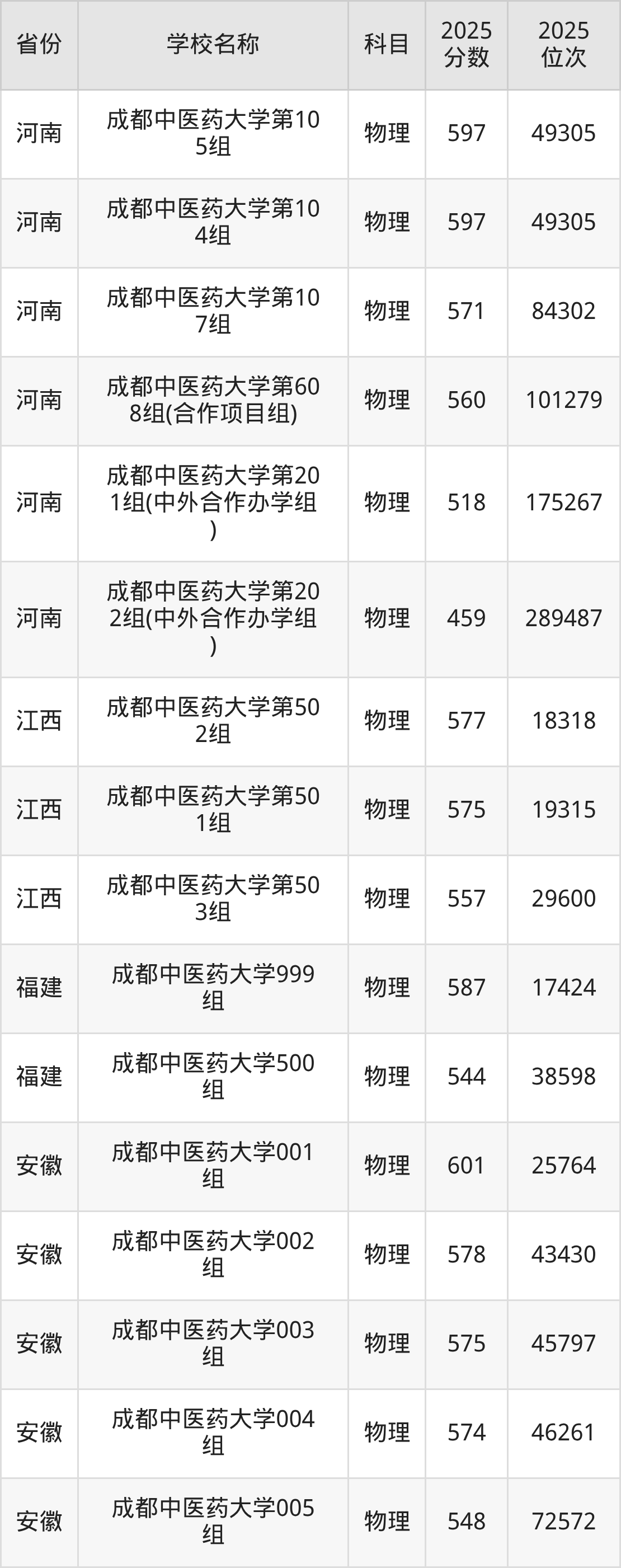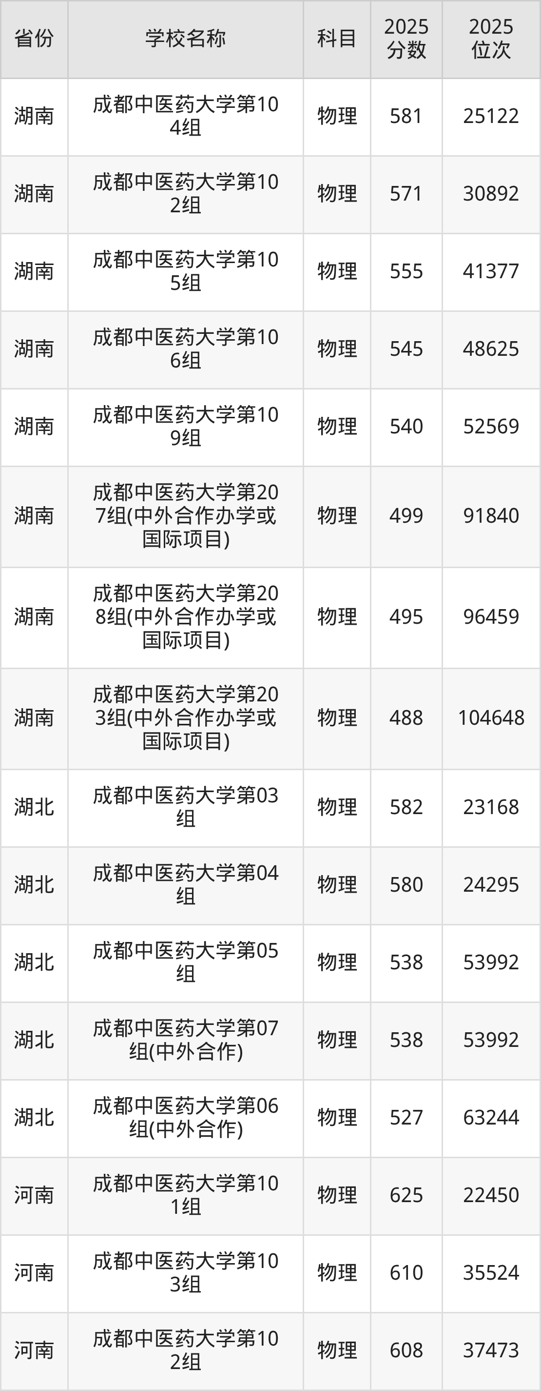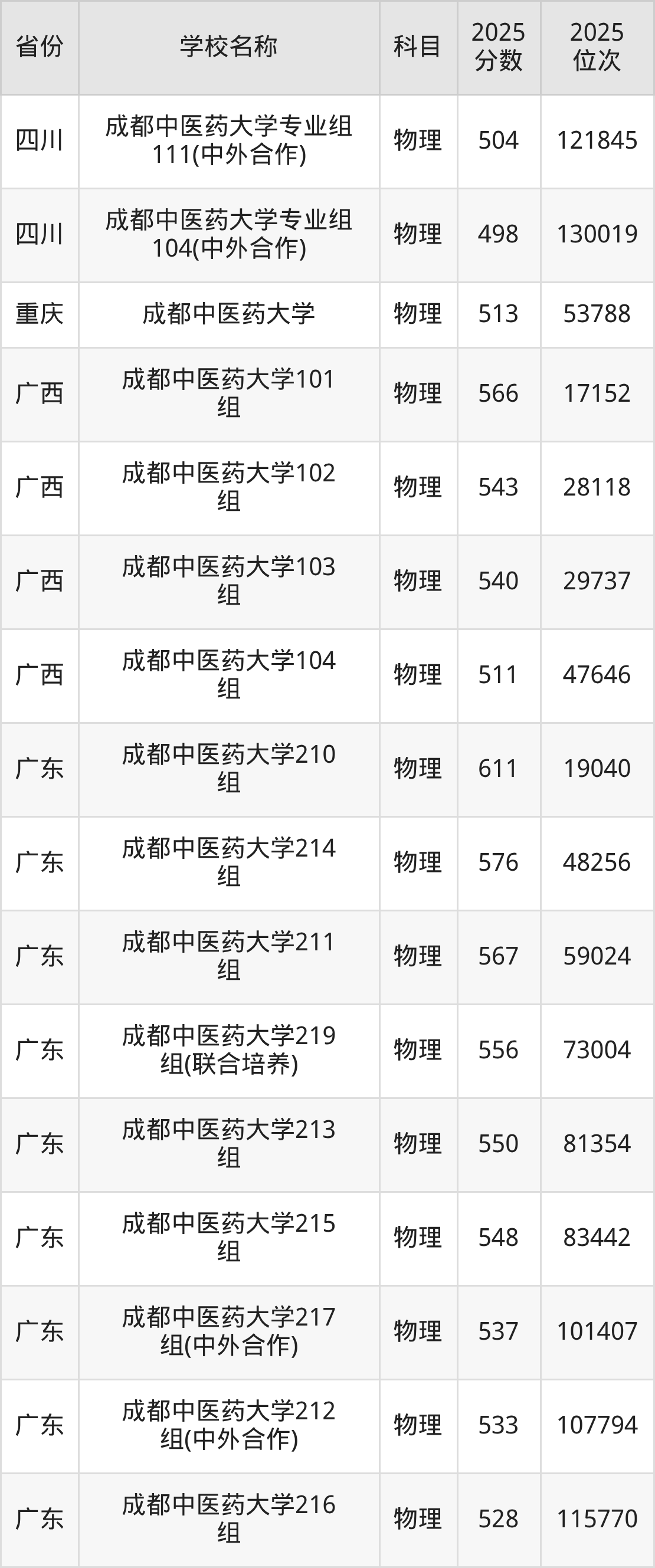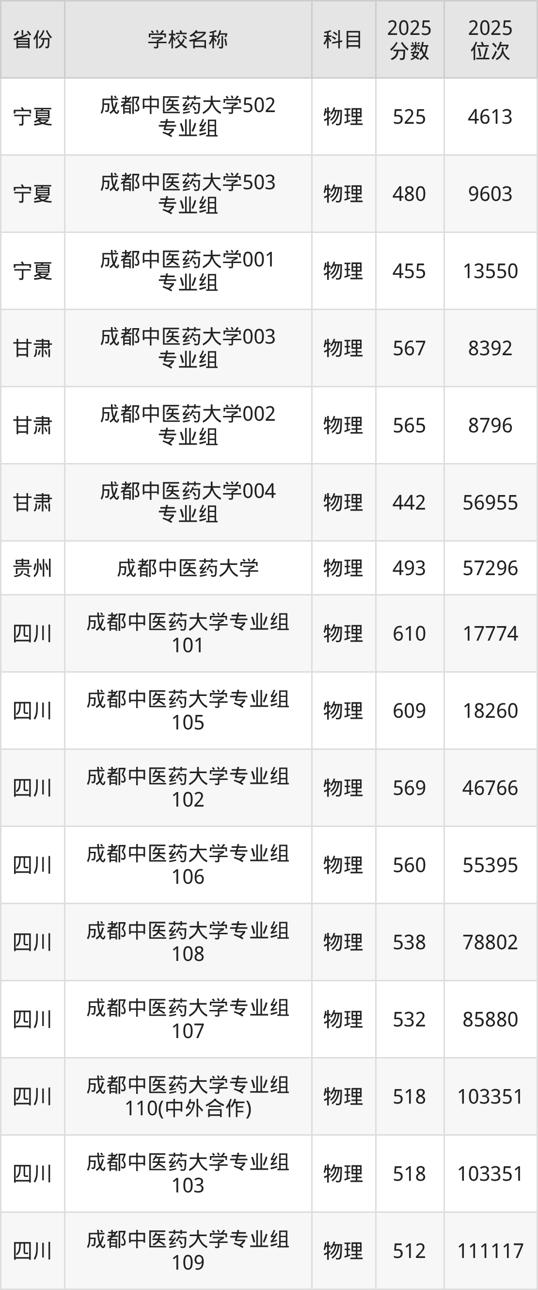 成都中医药大学2025年有100个专业组面向四川省内首选了物理科目的考生招生: