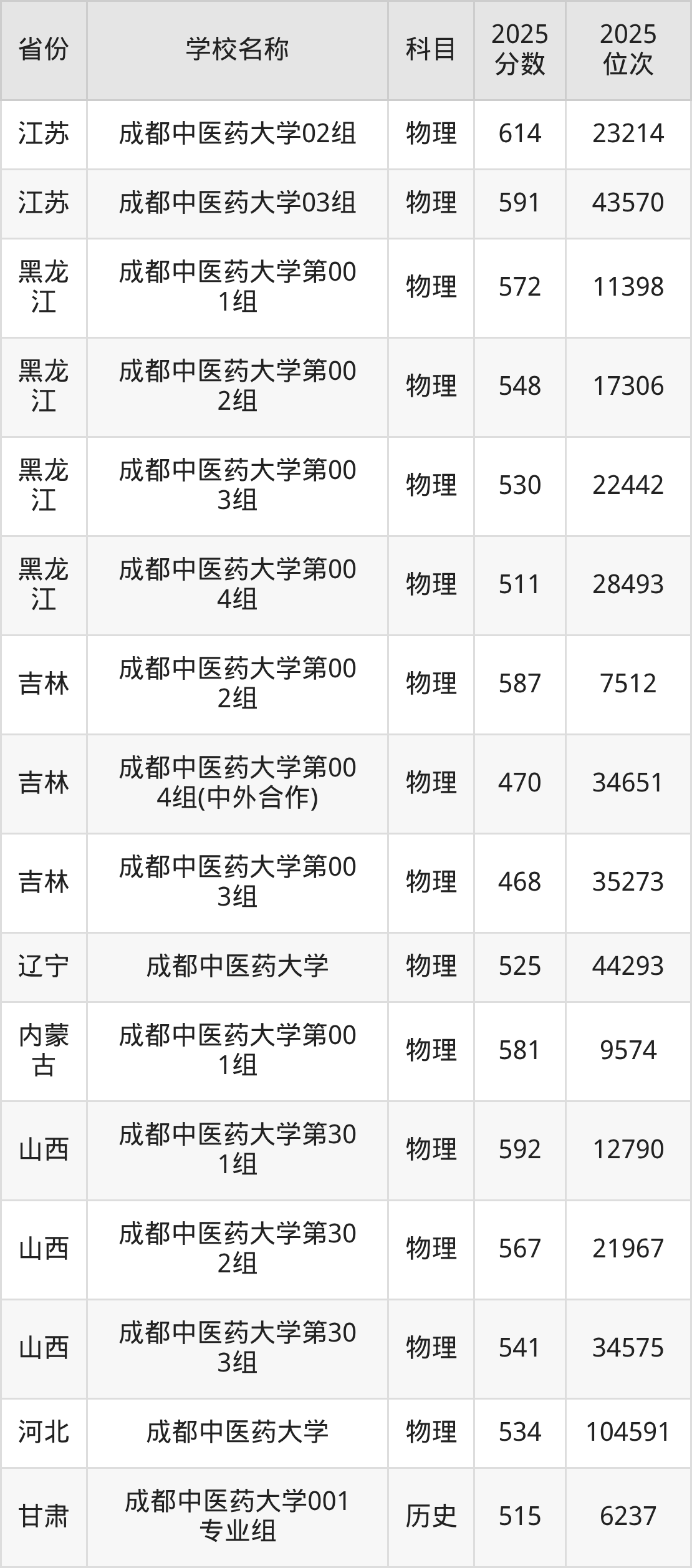 2、针灸推拿学专业:2025年最低590分、最低位次是8013