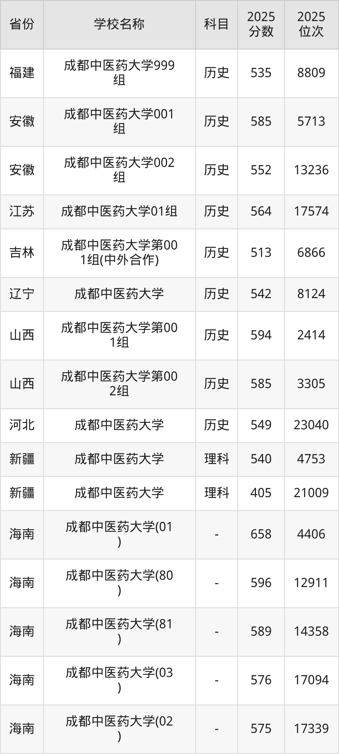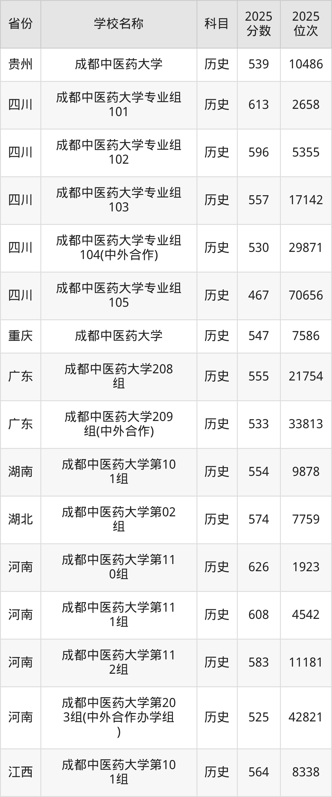 二、成都中医药大学各专业录取分数线