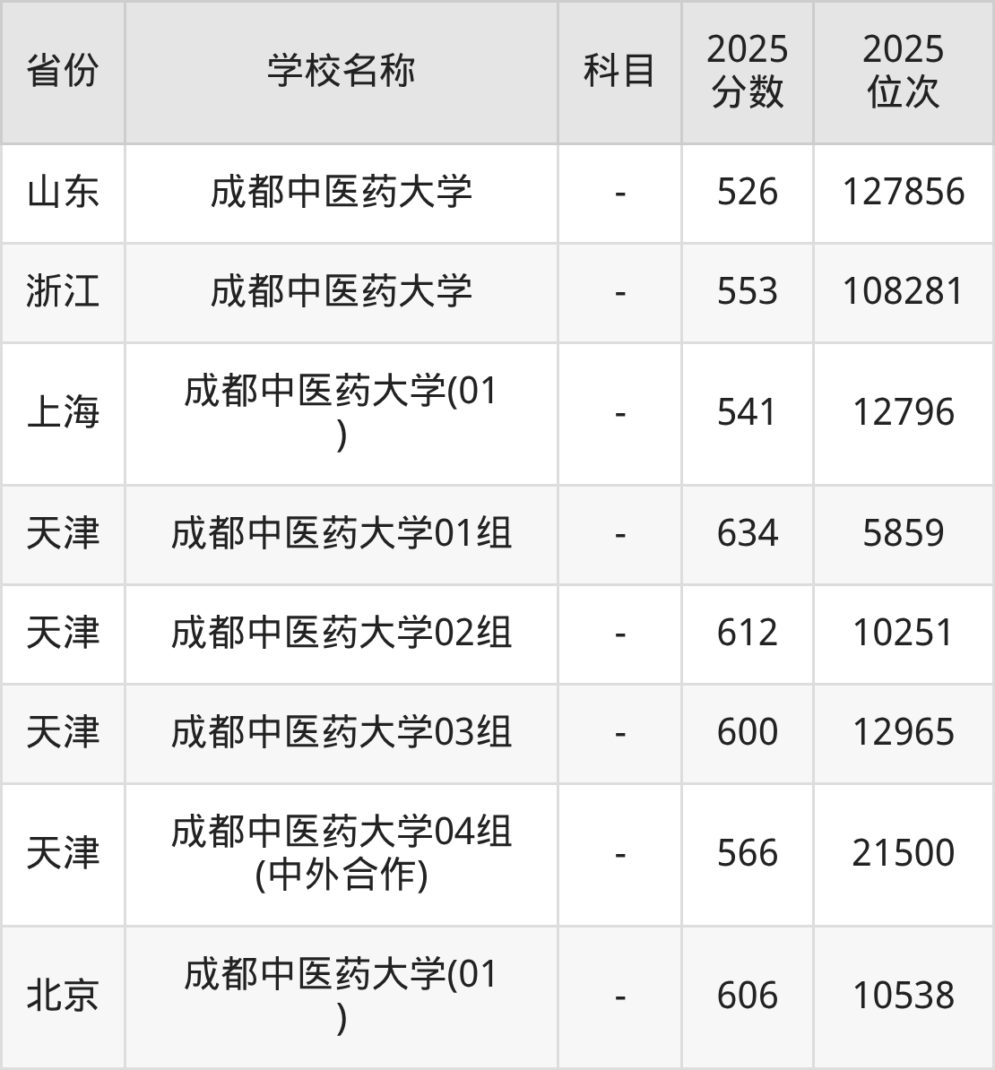 一、2025成都中医药大学录取分数线