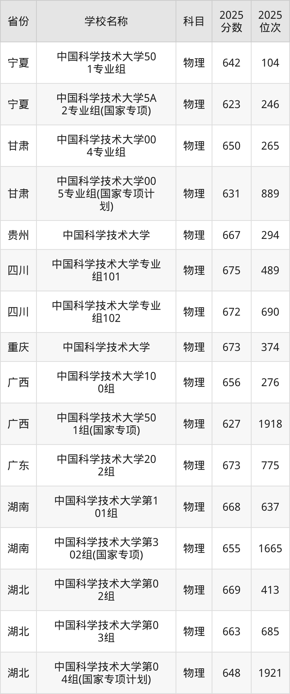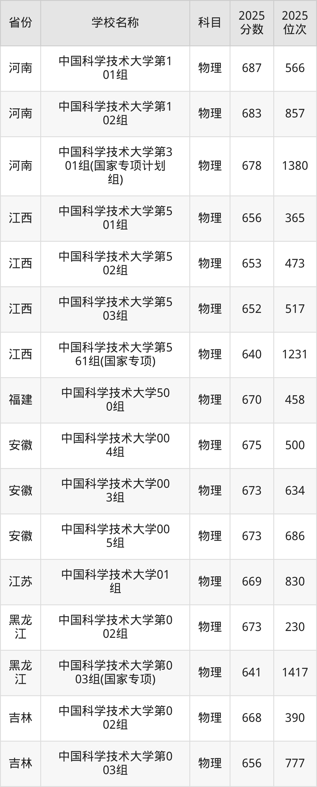 中国科学技术大学2025年有3个专业组面向安徽省内首选了物理科目的考生招生: