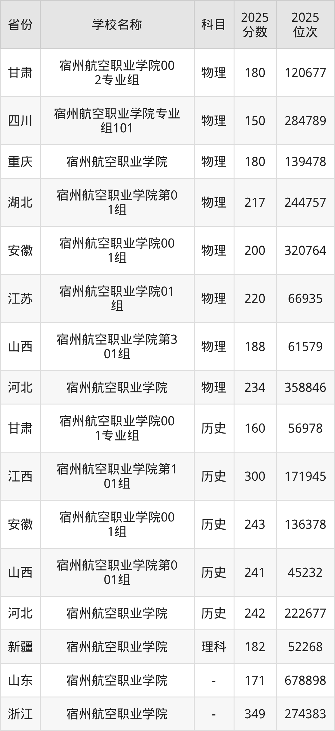 宿州航空职业学院2025年有1个专业组面向安徽省内首选了历史科目的考生招生:
