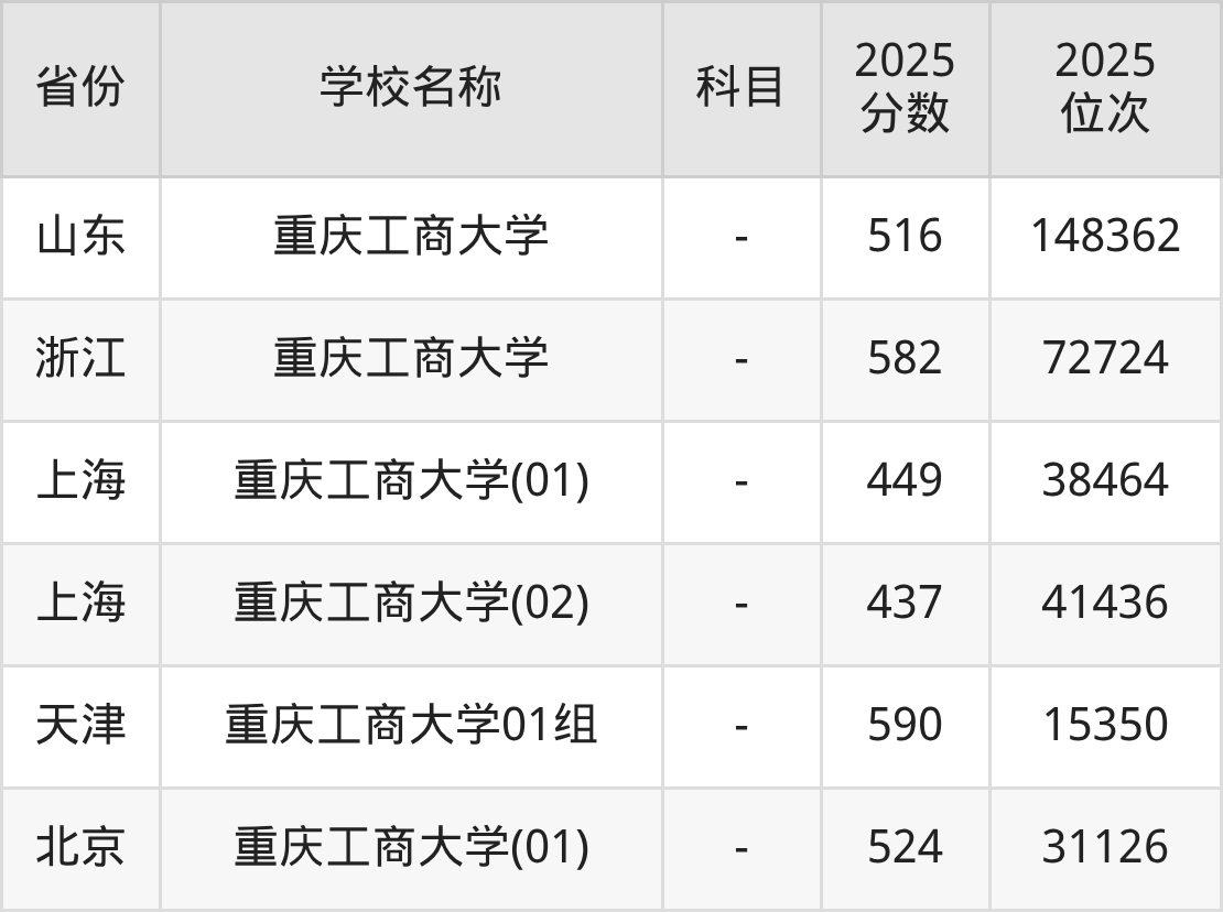 2025年重庆工商大学在全国各省本科的最低录取分数线在415~608分之间。海南高考生最低608分能上重庆工商大学、天津高考生最低590分能上重庆工商大学……下文将展示重庆工商大学在全国27个高考省份中的本科最低投档录取分汇总!