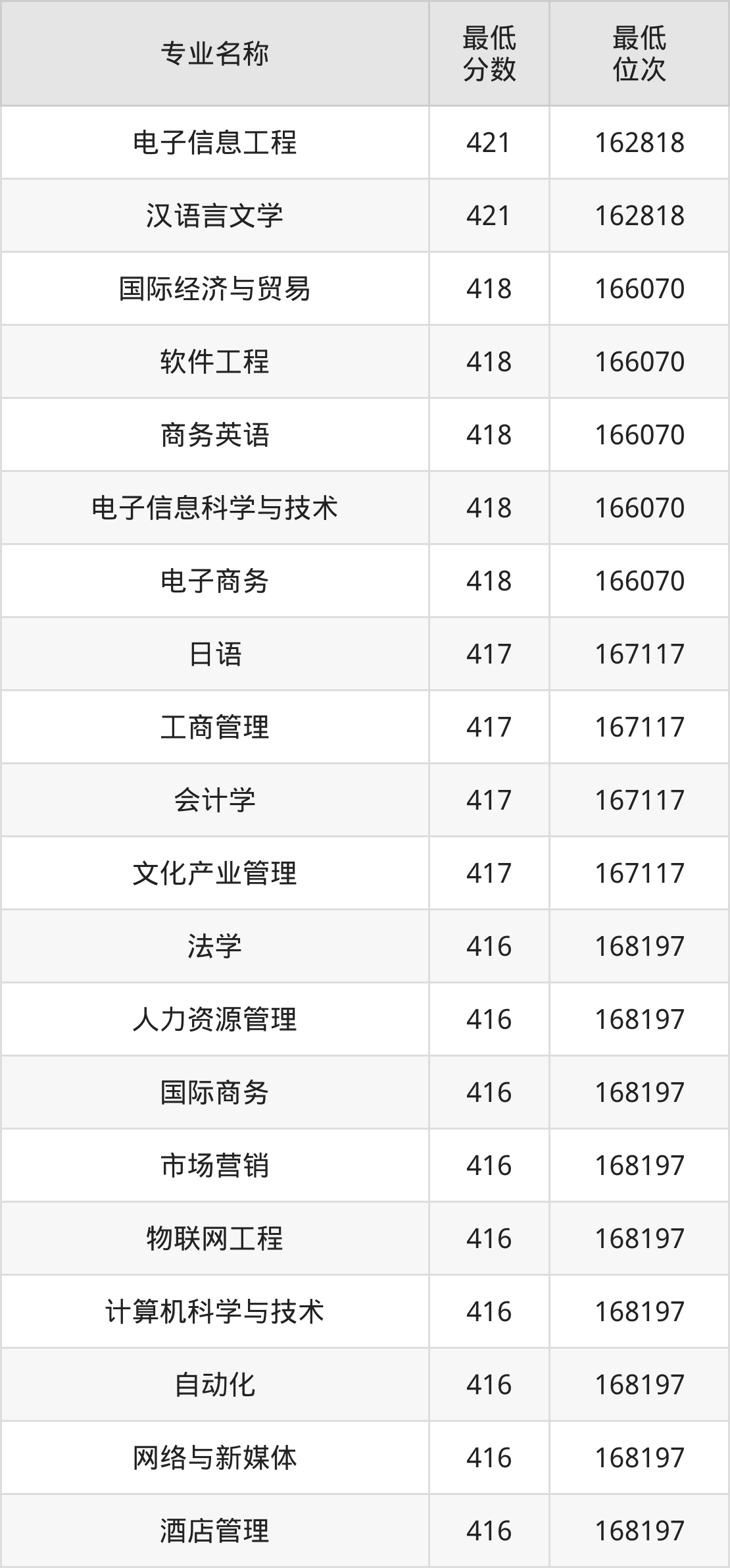 | 云南 | 理科二本 | —— | 423/384/409 |