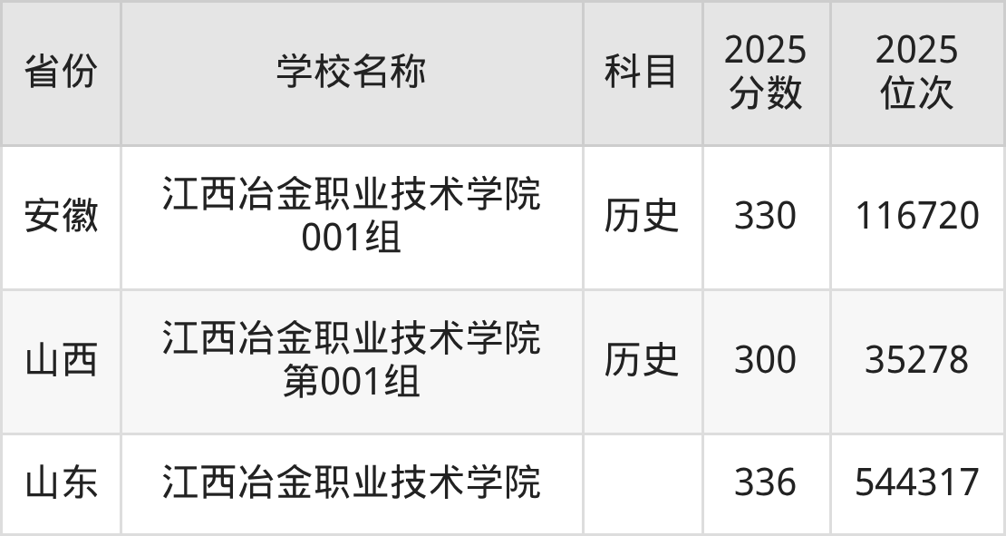江西冶金职业技术学院2025年有1个专业组面向江西省内首选了历史科目的考生招生: