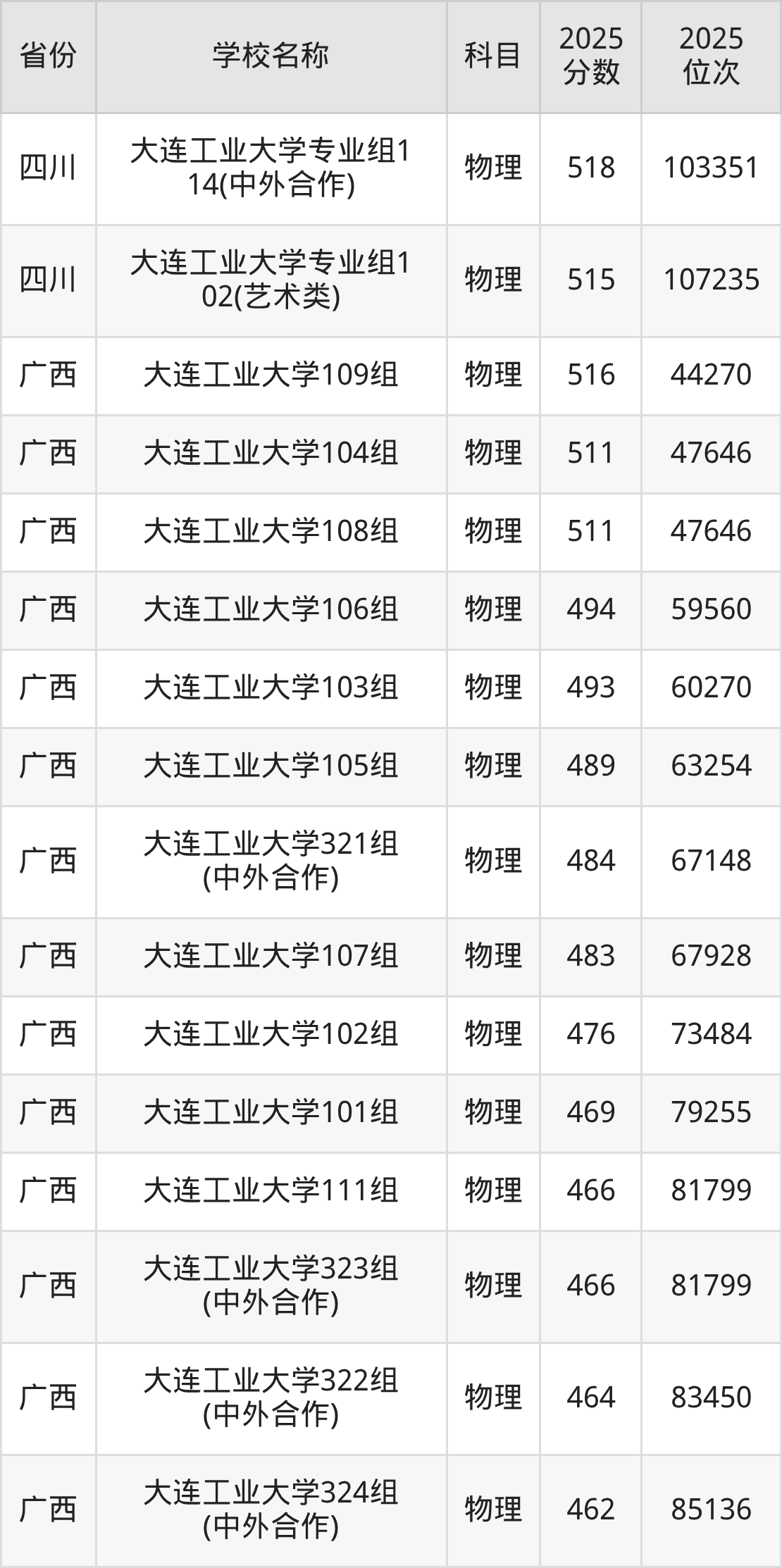 2025年大连工业大学在全国各省本科的最低录取分数线在396~612分之间。河南物理类高考生最低612分能上大连工业大学、江苏物理类高考生最低568分能上大连工业大学……下文将展示大连工业大学在全国23个高考省份中的本科最低投档录取分汇总!