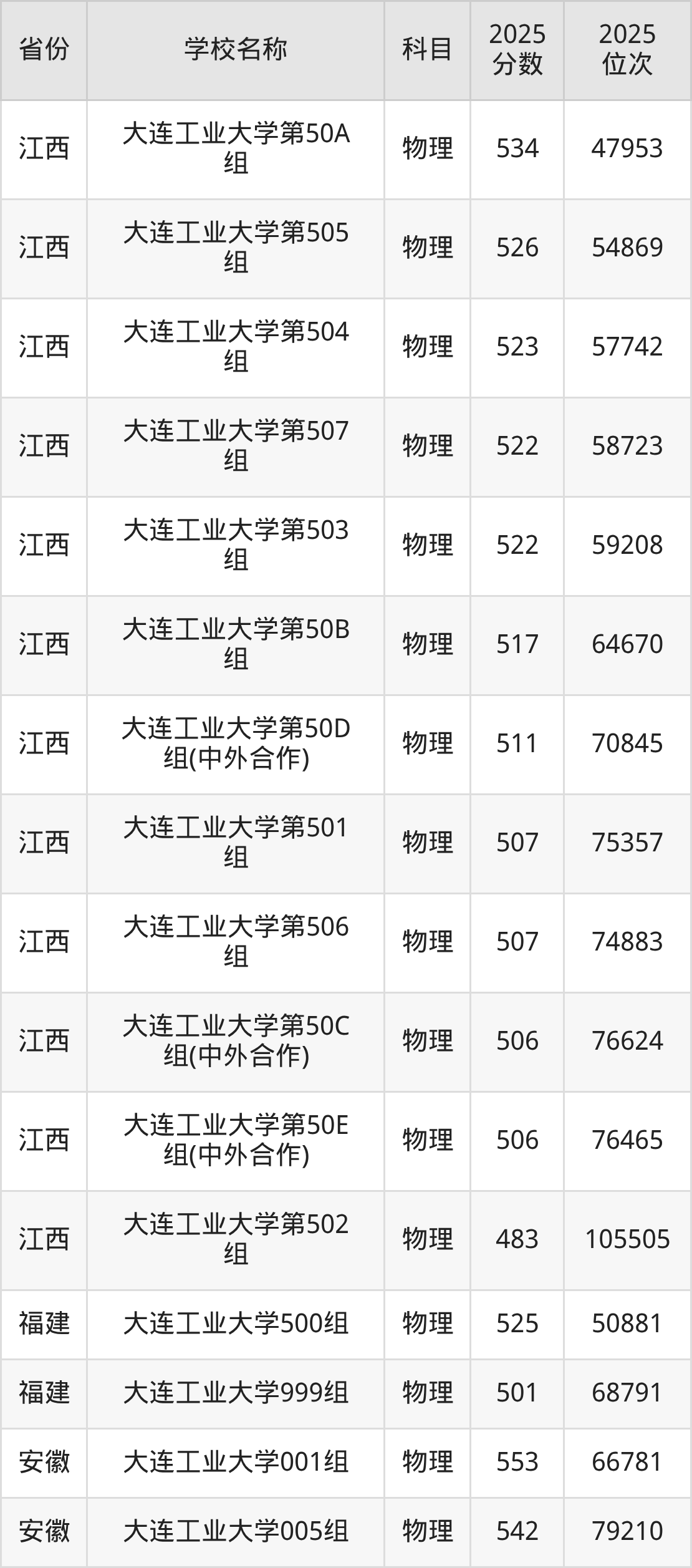 大连工业大学2025年面向辽宁省内首选了物理科目的考生招生: