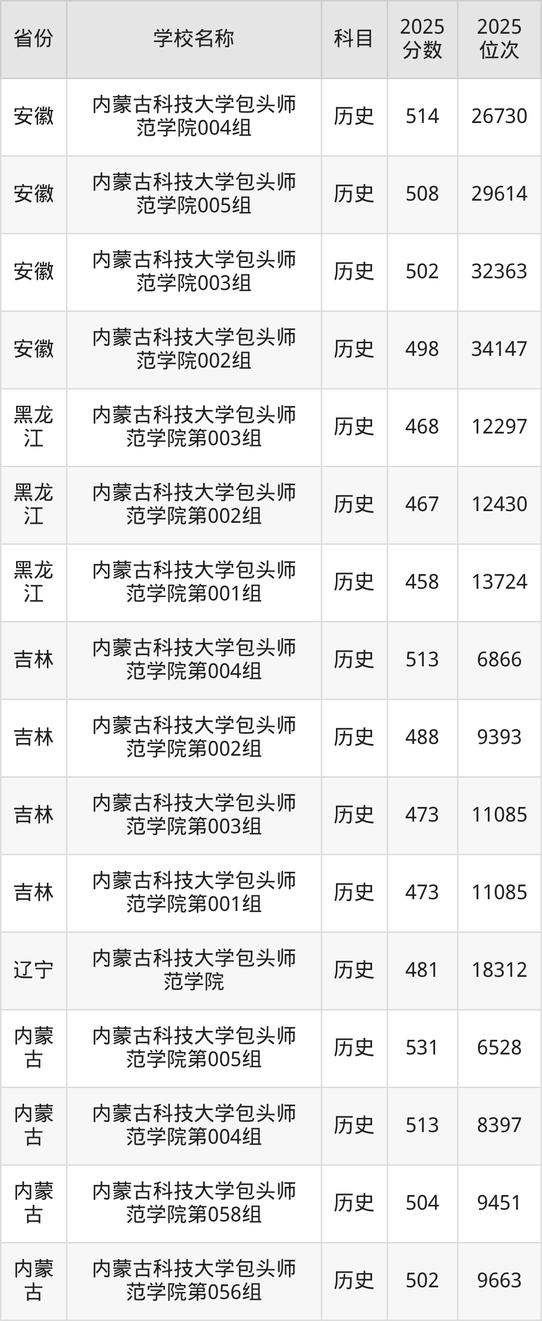 内蒙古科技大学包头师范学院2025年有11个专业组面向内蒙古自治区内首选了历史科目的考生招生: