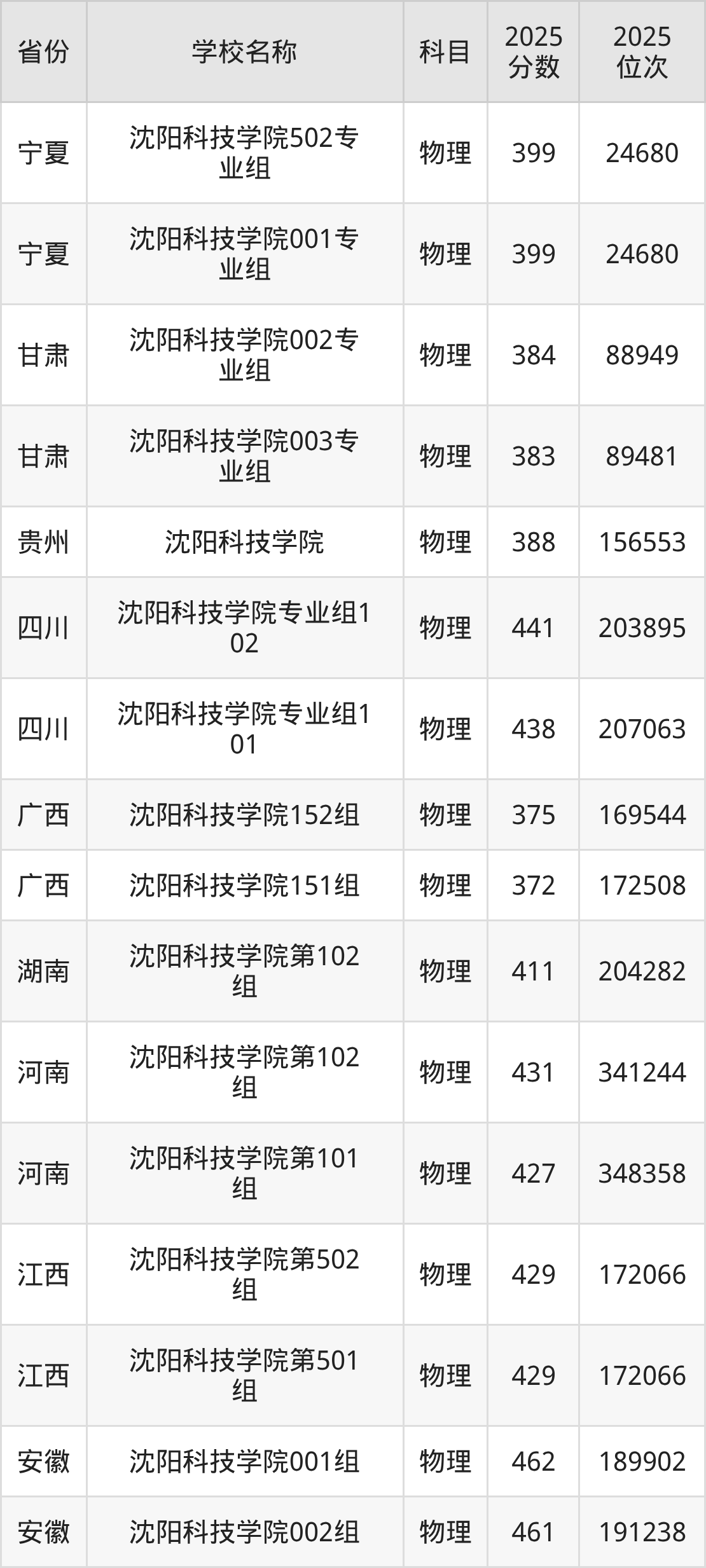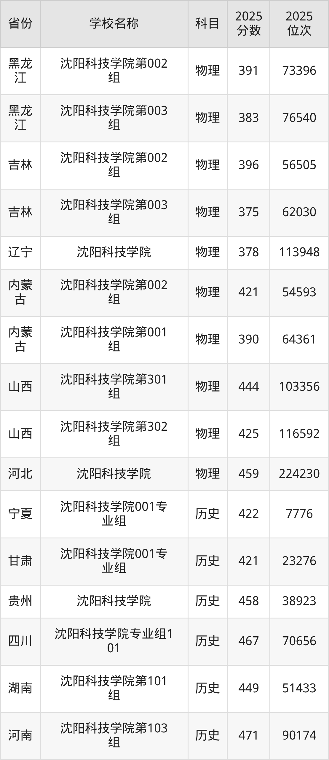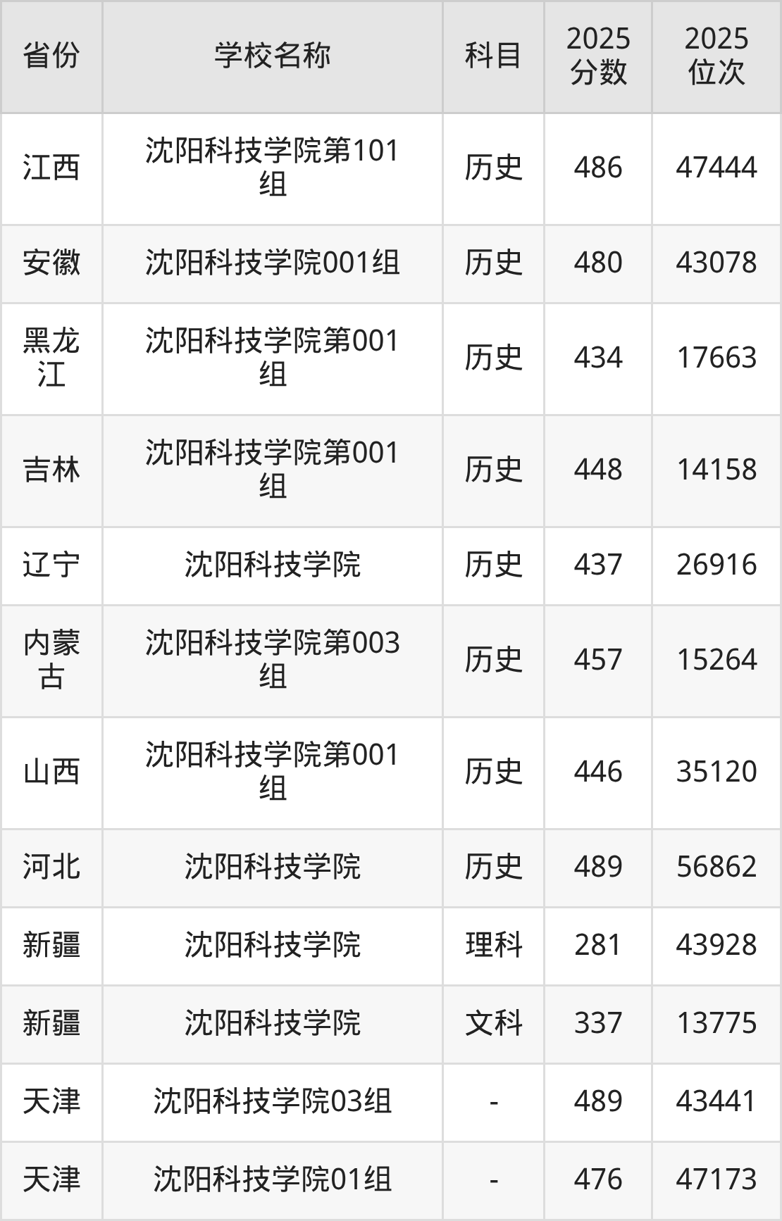 一、2025沈阳科技学院录取分数线