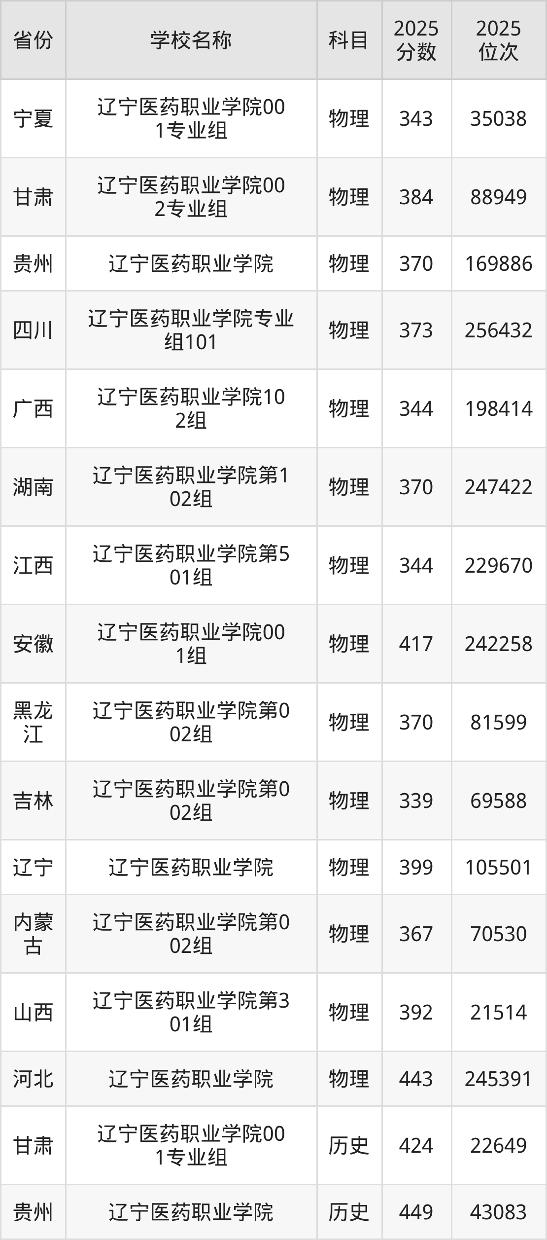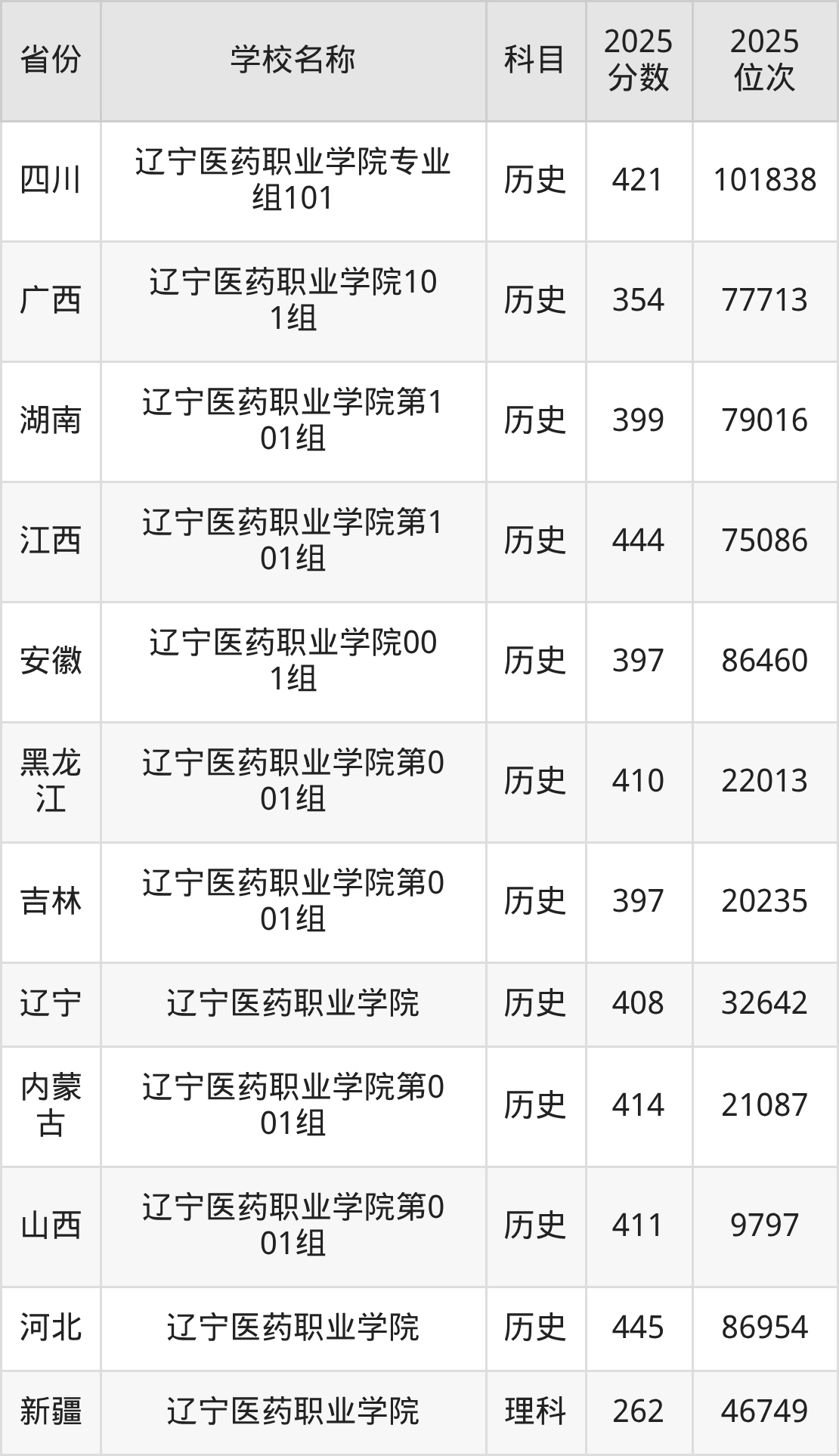 32、医疗器械经营与服务专业:2025年最低408分、最低位次是101566
