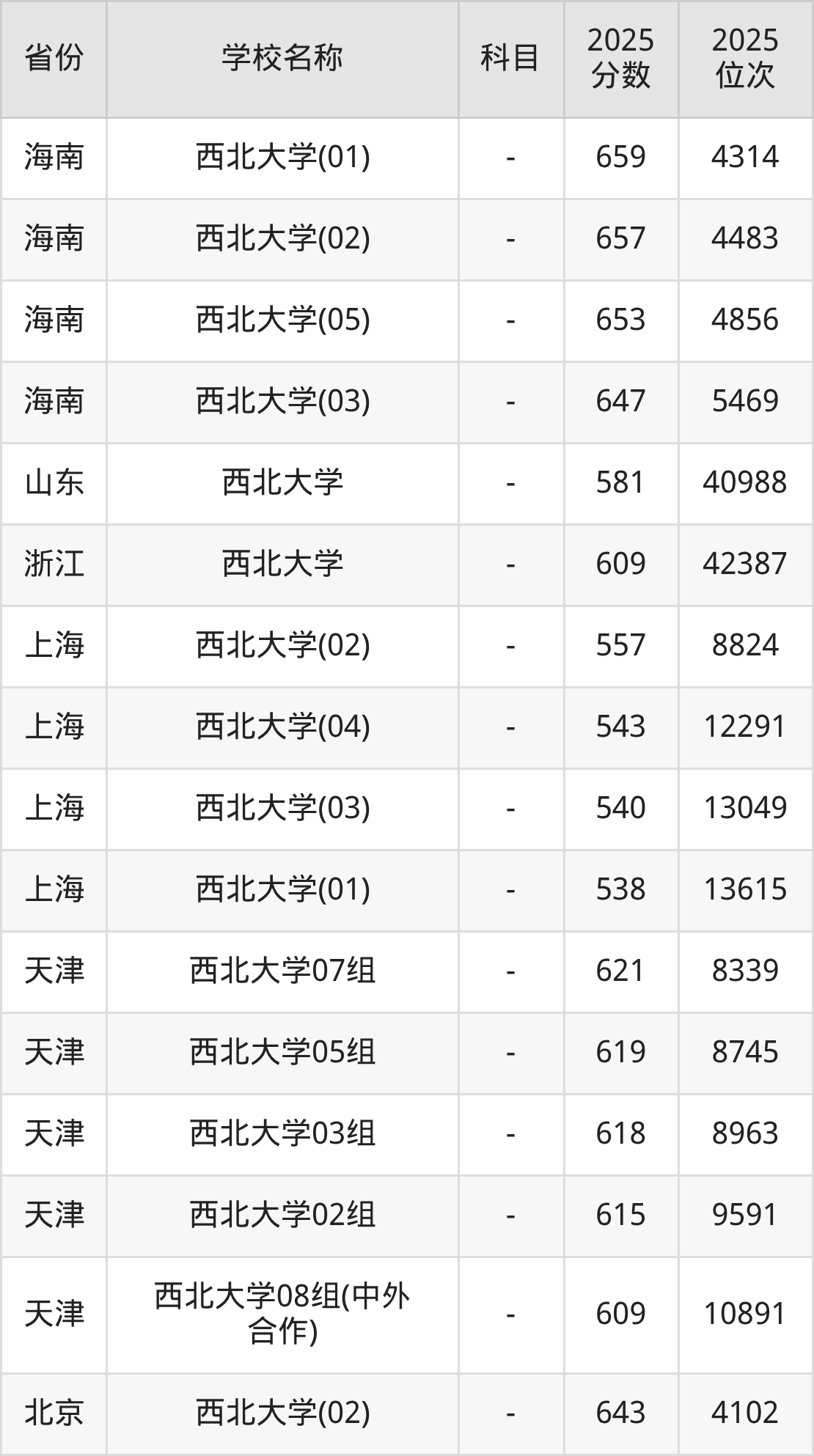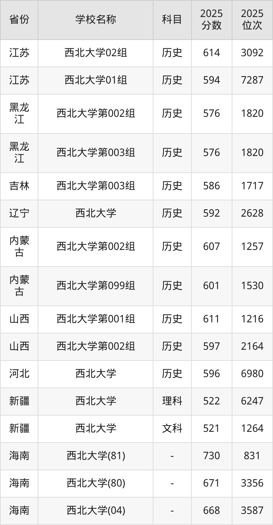 2025年西北大学在全国各省本科的最低录取分数线在521~730分之间。海南高考生最低730分能上西北大学、北京高考生最低643分能上西北大学……下文将展示西北大学在全国27个高考省份中的本科最低投档录取分汇总!