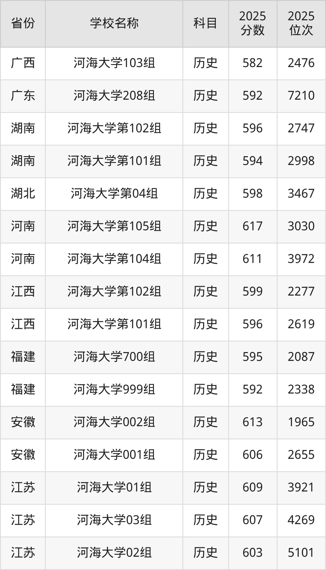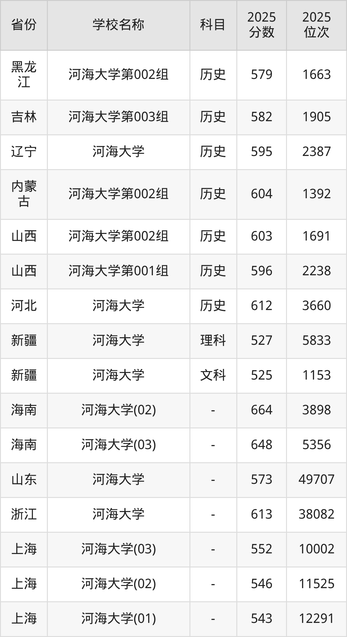 一、2025河海大学录取分数线