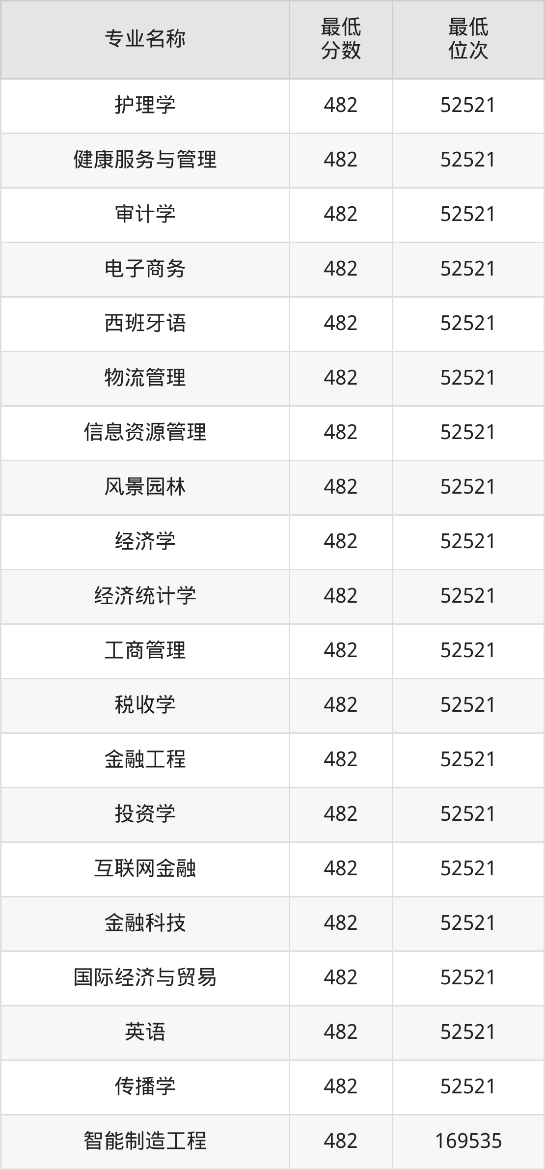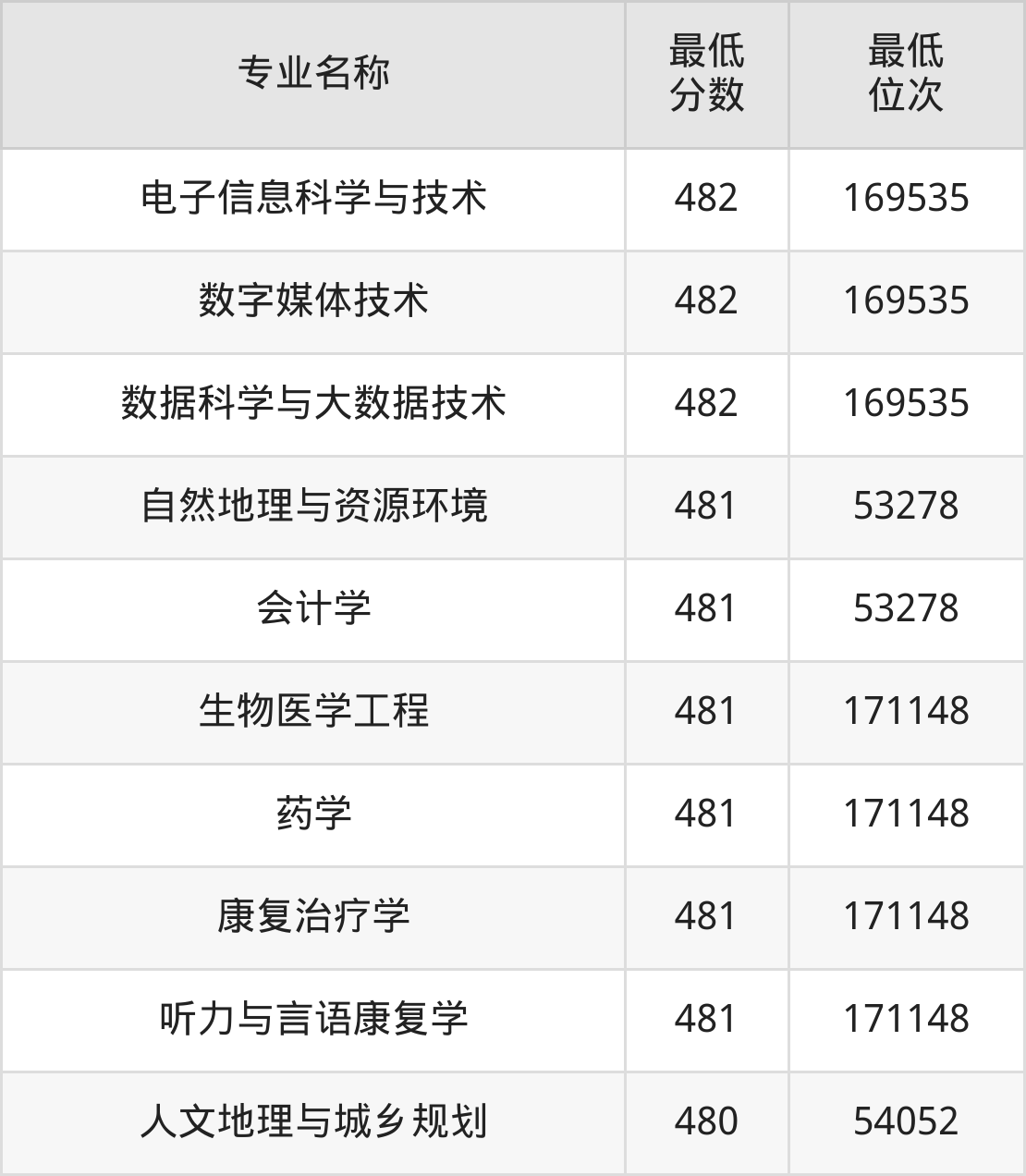 | 四川 | 文科本科二批 | —— | 458/472/478 |