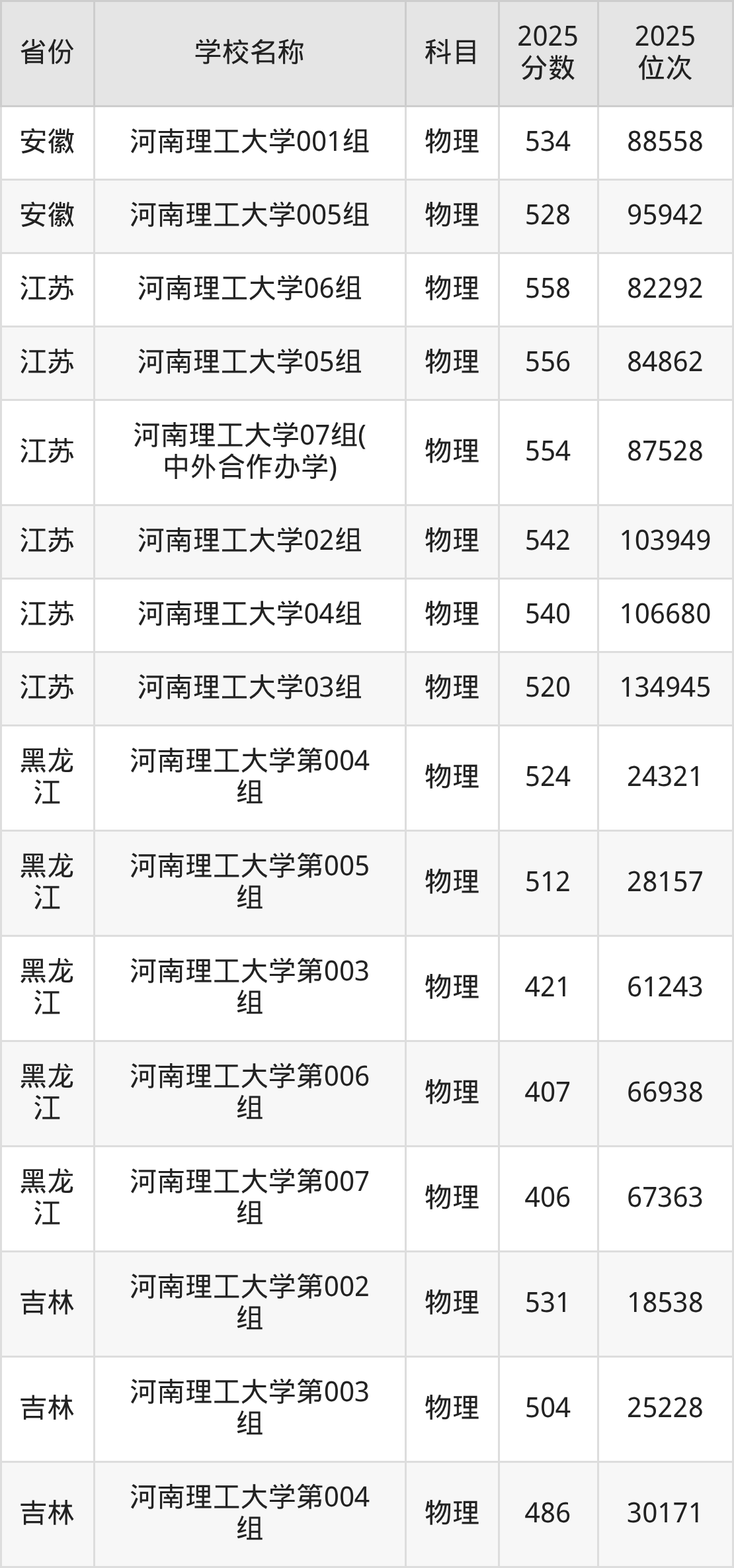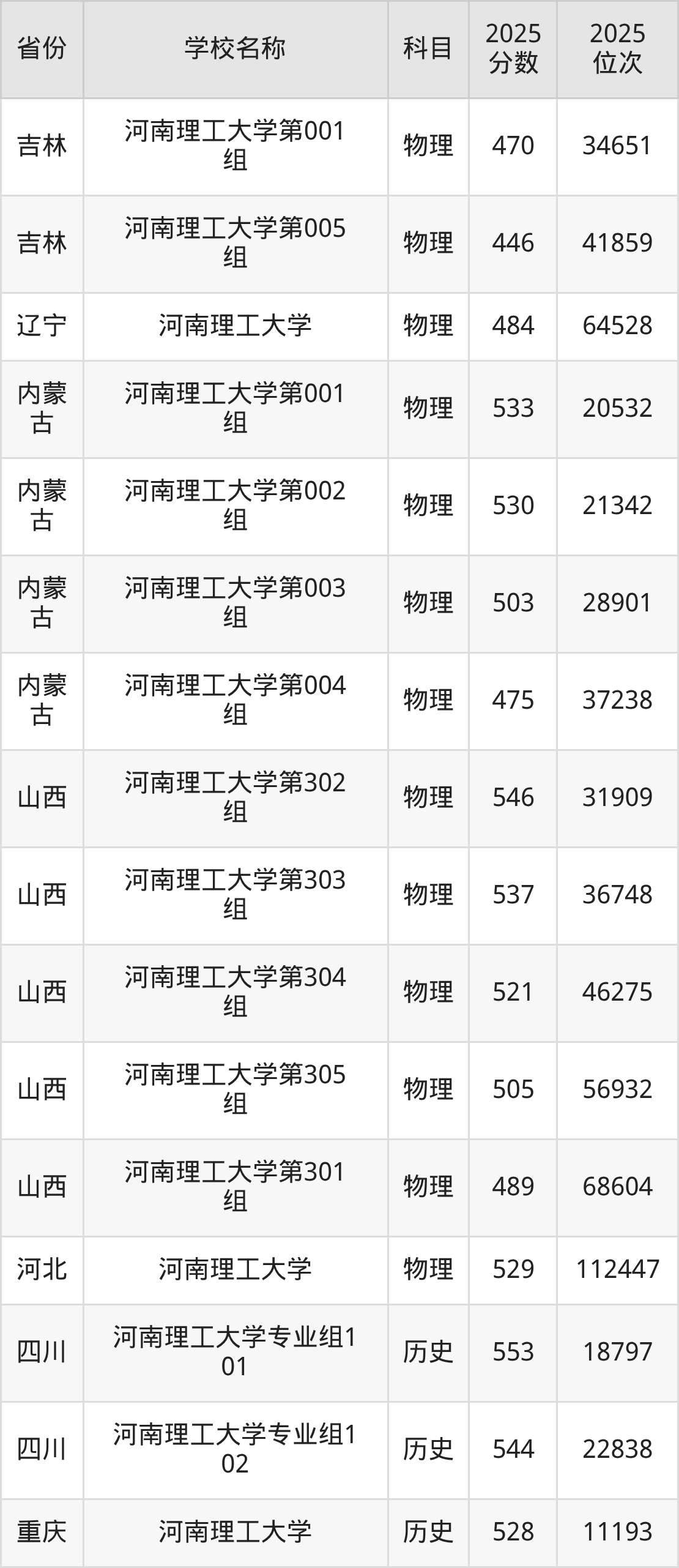 二、河南理工大学各专业录取分数线