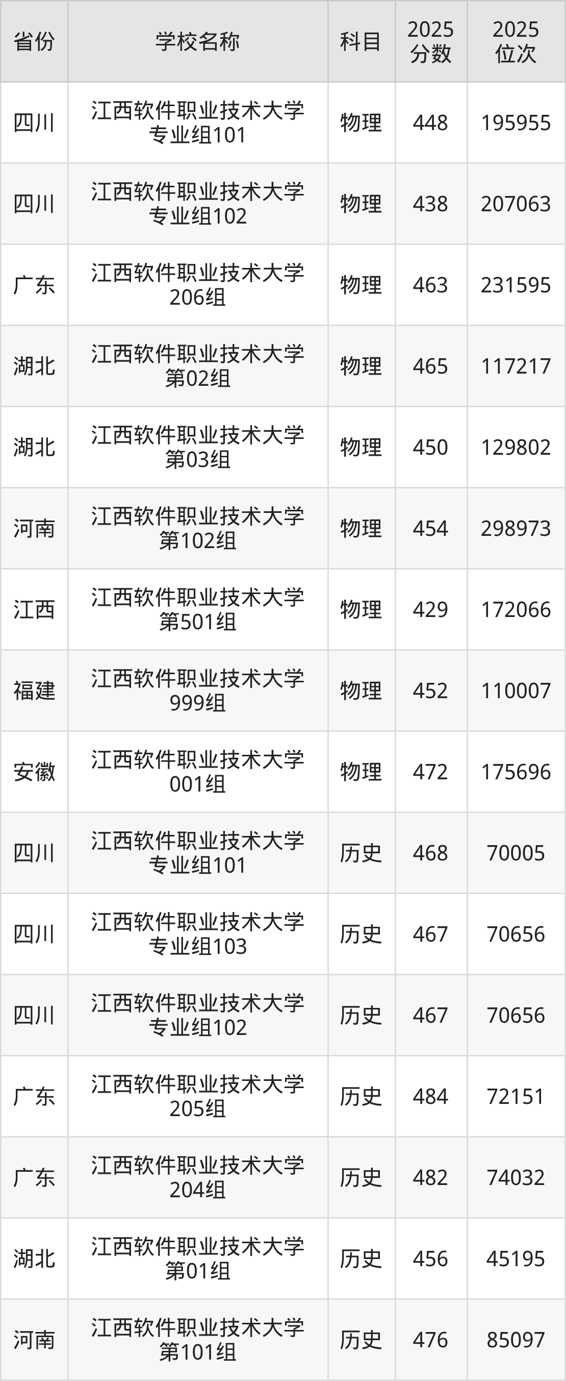 二、江西软件职业技术大学各专业录取分数线