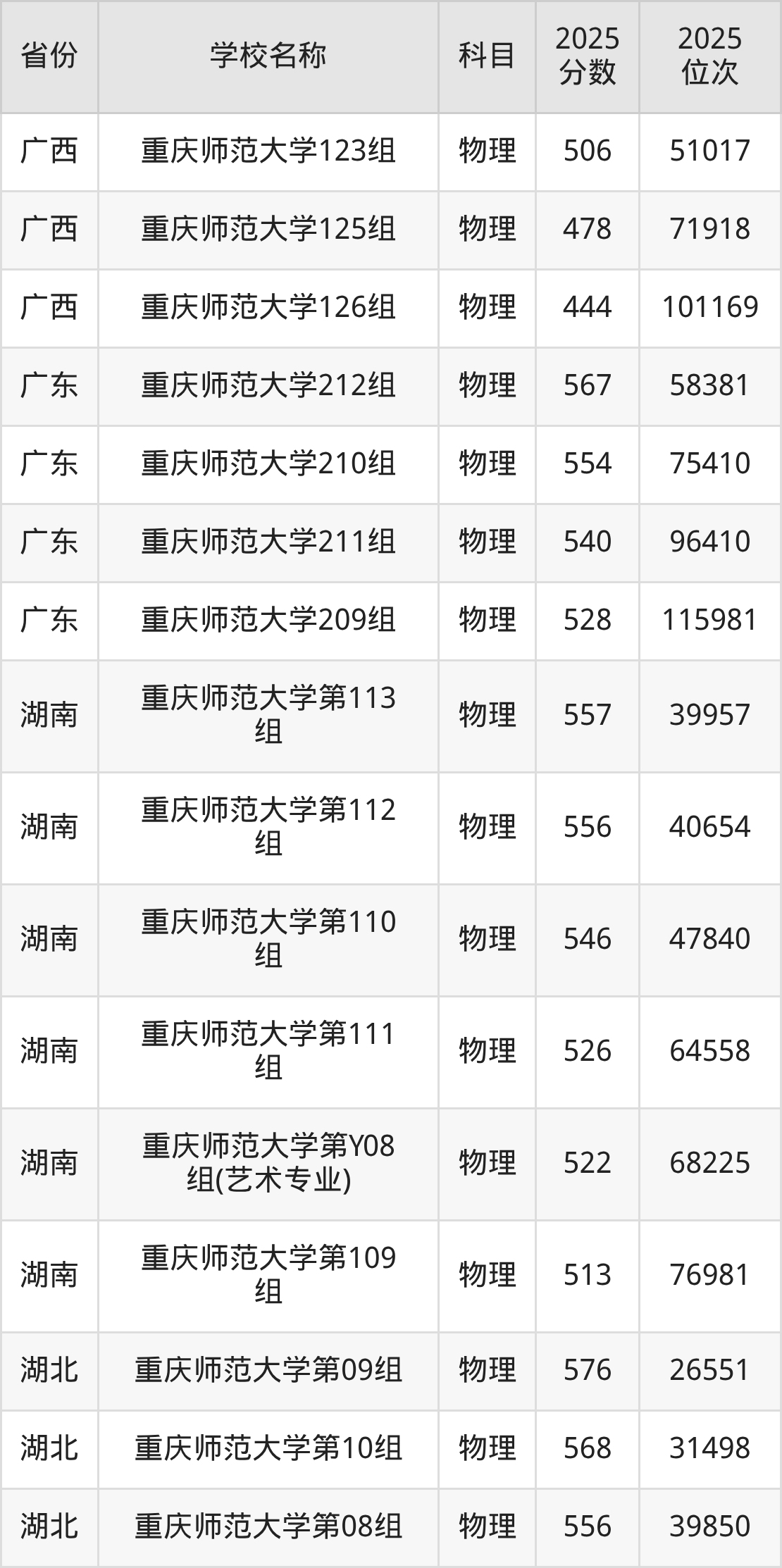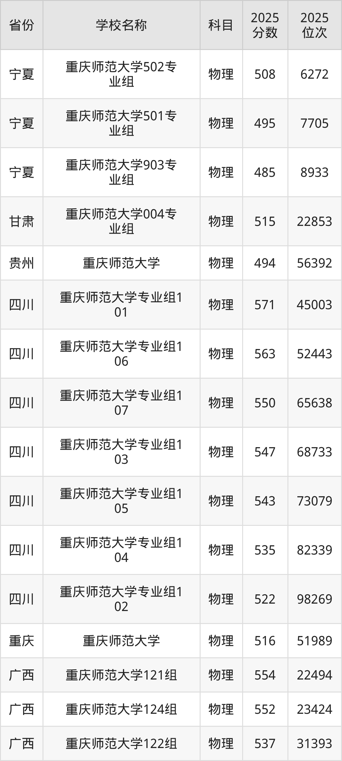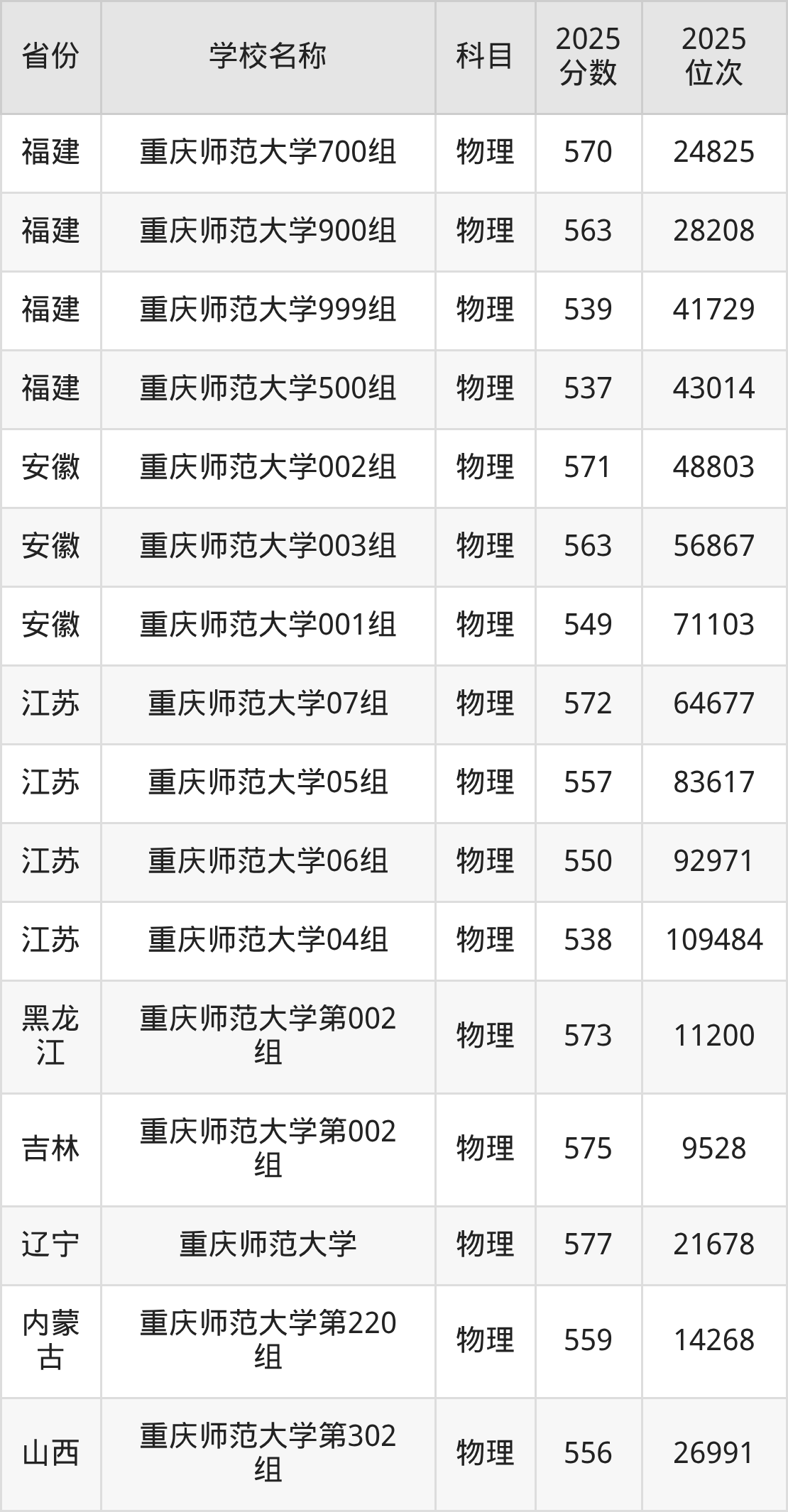 重庆师范大学2025年面向重庆市内首选了物理科目的考生招生: