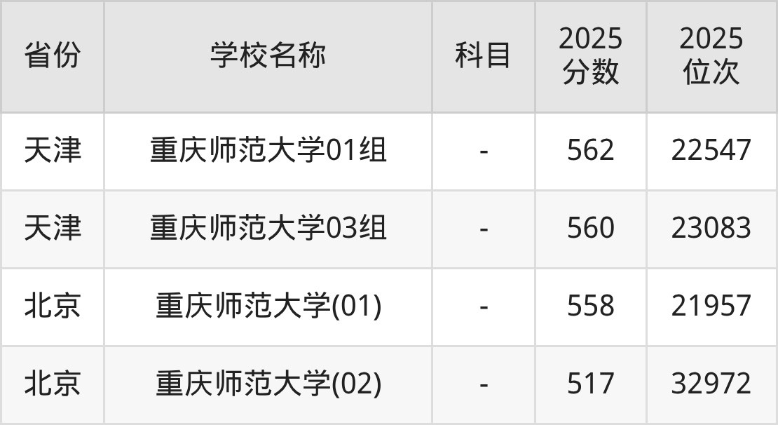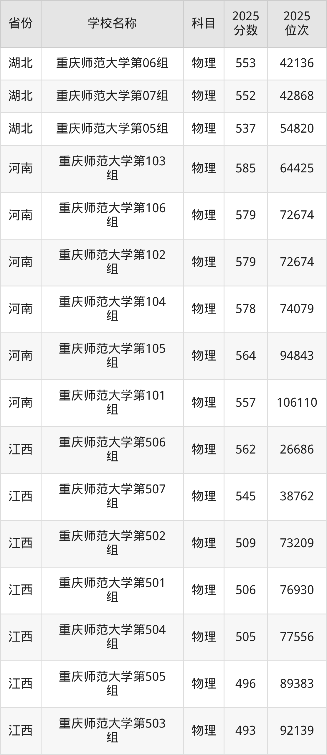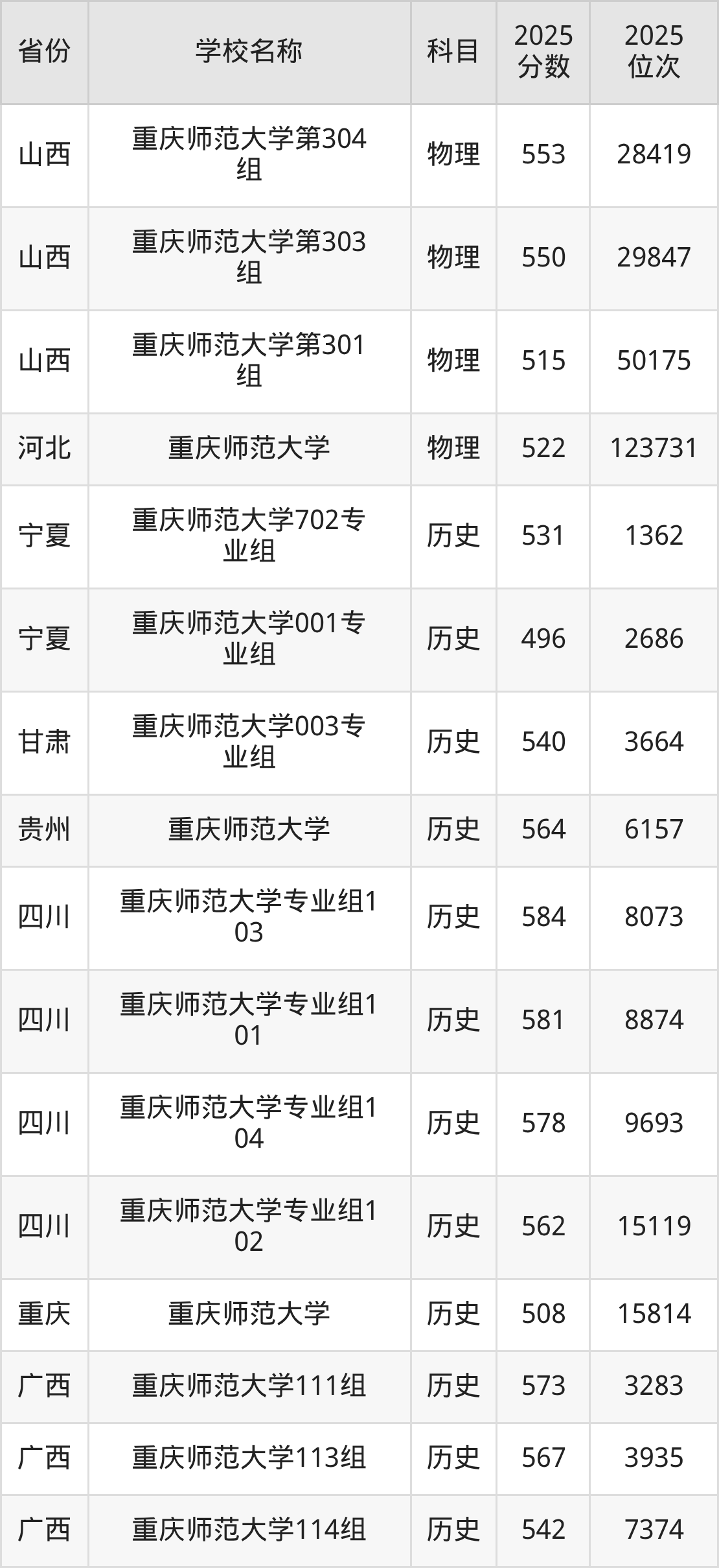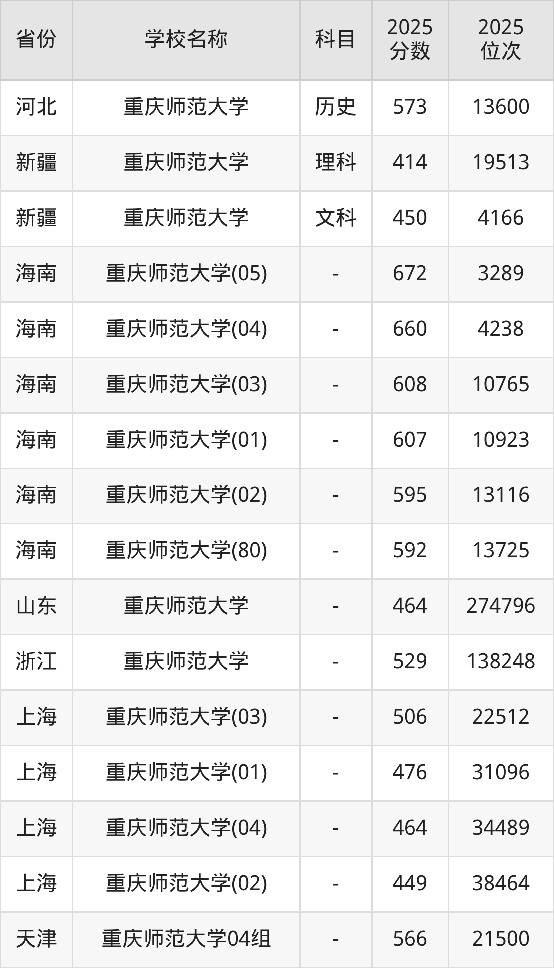 2025年重庆师范大学在全国各省本科的最低录取分数线在414~672分之间。海南高考生最低672分能上重庆师范大学、河南物理类高考生最低585分能上重庆师范大学……下文将展示重庆师范大学在全国27个高考省份中的本科最低投档录取分汇总!