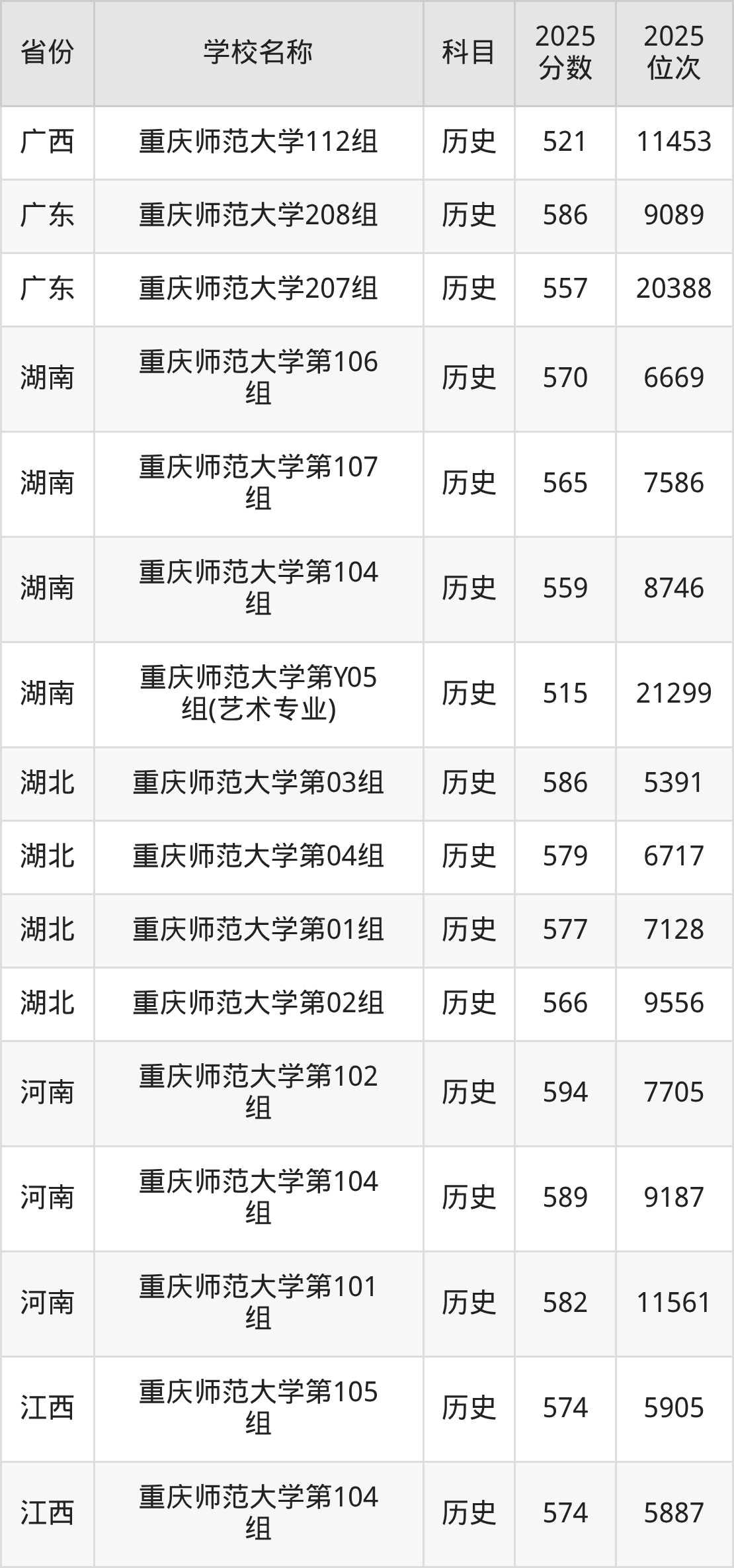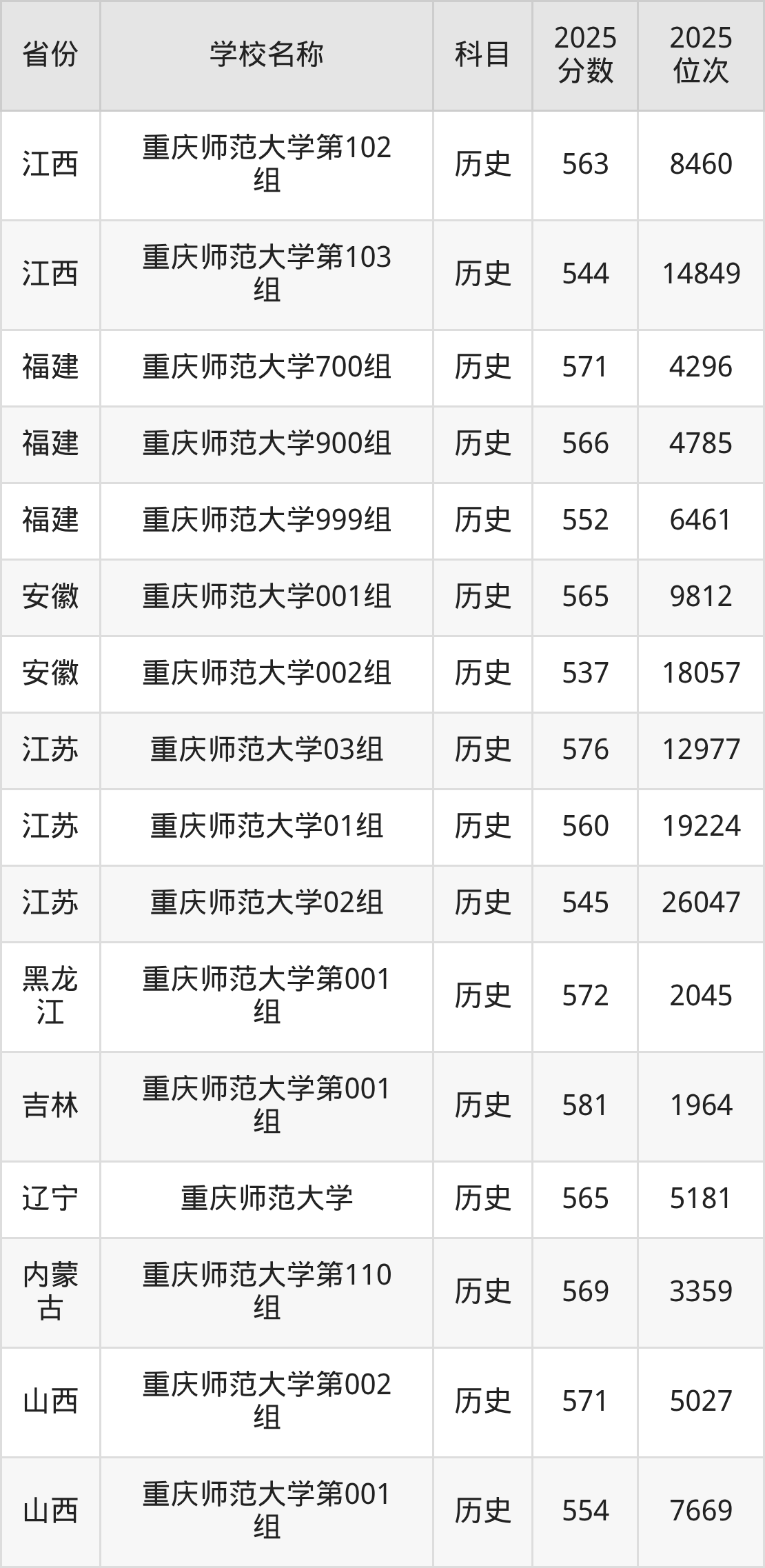 重庆师范大学2025年面向重庆市内首选了历史科目的考生招生: