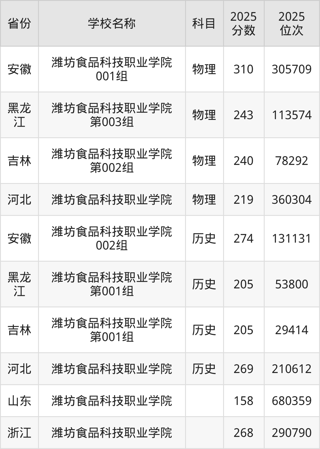 2025年潍坊食品科技职业学院在全国各省专科的最低录取分数线在158~310分之间。安徽物理类高考生最低310分能上潍坊食品科技职业学院、浙江高考生最低268分能上潍坊食品科技职业学院……下文将展示潍坊食品科技职业学院在全国6个高考省份中的专科最低投档录取分汇总!