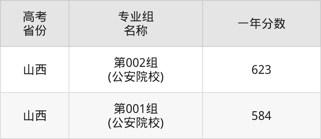 | 山西 | 中国人民警察大学第301组 (公安院校) | 595 |