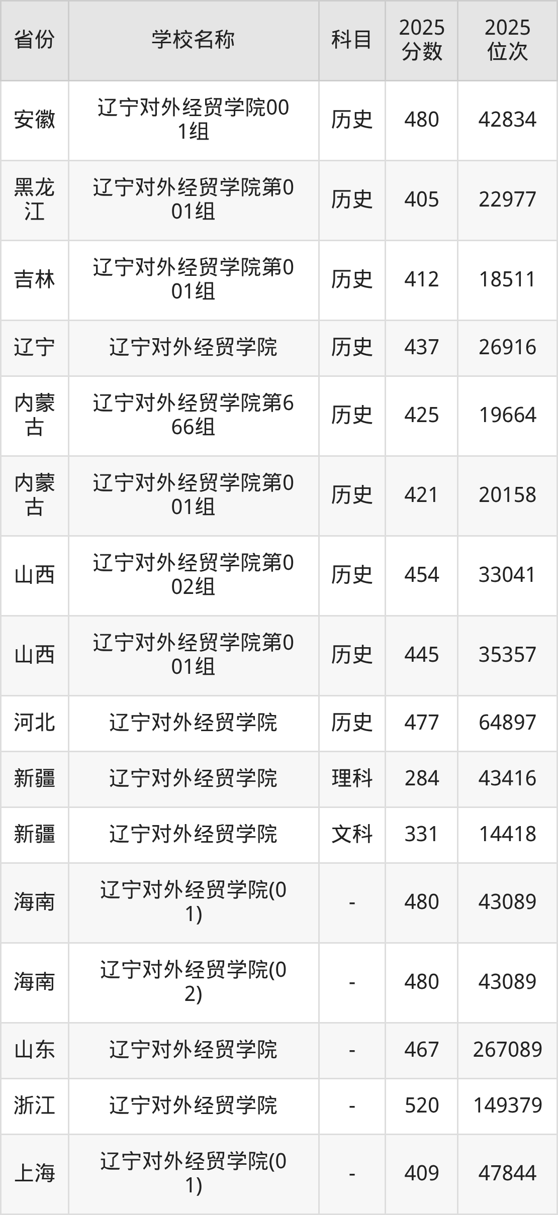 2025年辽宁对外经贸学院在全国各省本科的最低录取分数线在284~520分之间。浙江高考生最低520分能上辽宁对外经贸学院、海南高考生最低480分能上辽宁对外经贸学院……下文将展示辽宁对外经贸学院在全国27个高考省份中的本科最低投档录取分汇总!