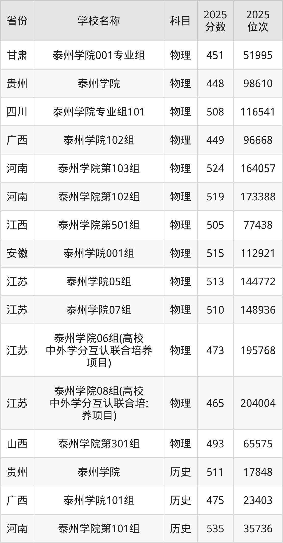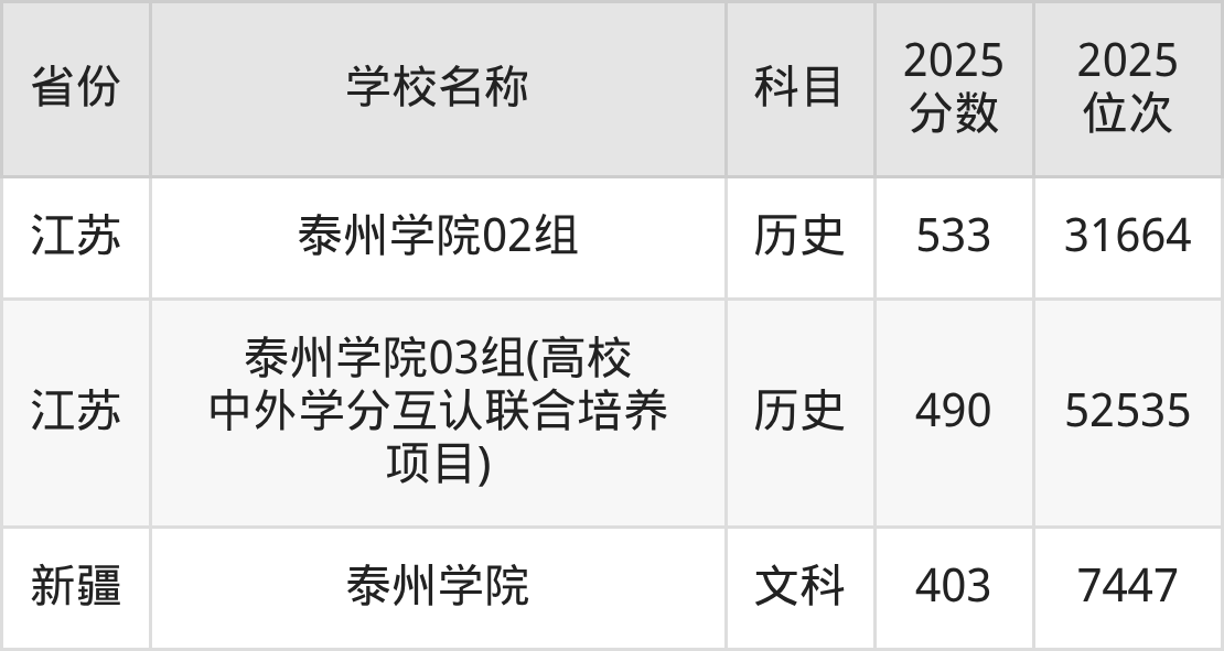 一、2025泰州学院录取分数线
