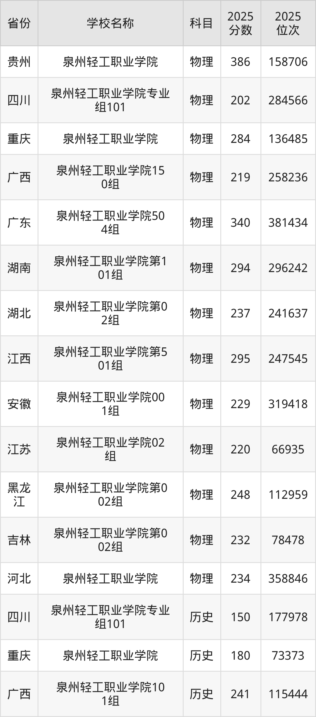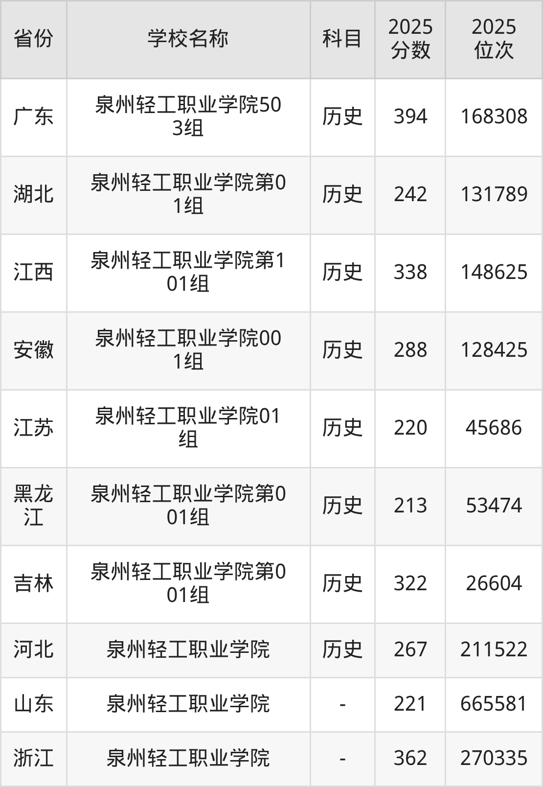一、2025泉州轻工职业学院录取分数线