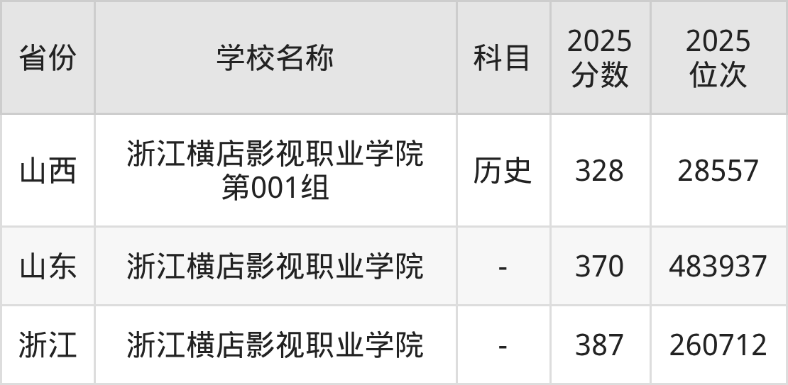 一、2025浙江横店影视职业学院录取分数线