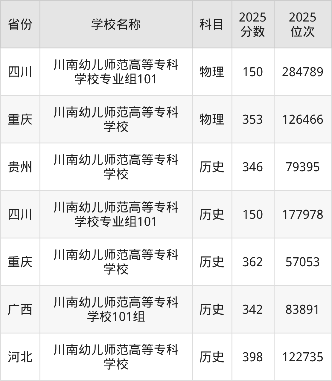 一、2025川南幼儿师范高等专科学校录取分数线