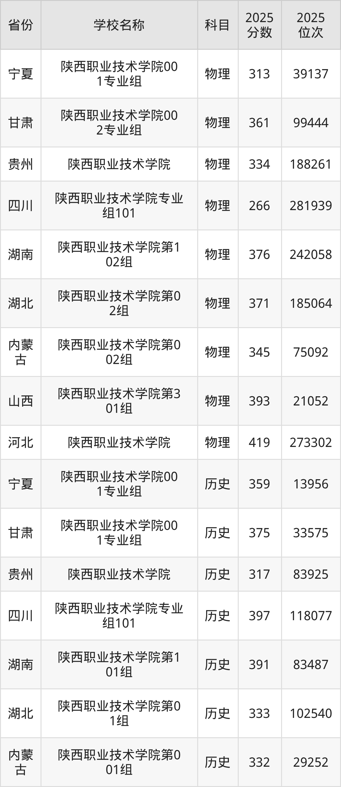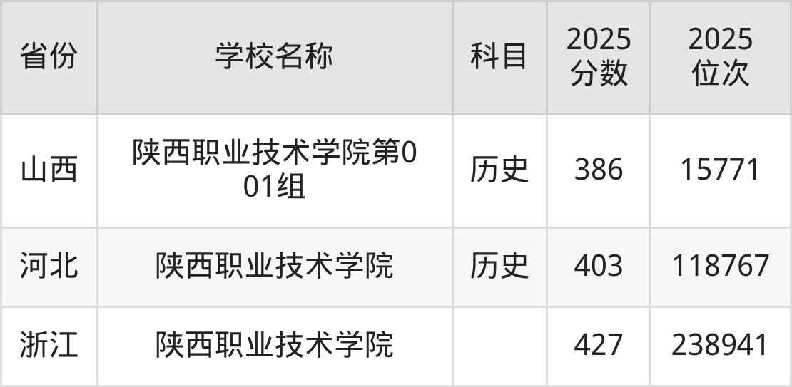 2025年陕西职业技术学院在全国各省专科的最低录取分数线在266~427分之间。浙江高考生最低427分能上陕西职业技术学院、河北物理类高考生最低419分能上陕西职业技术学院……下文将展示陕西职业技术学院在全国10个高考省份中的专科最低投档录取分汇总!