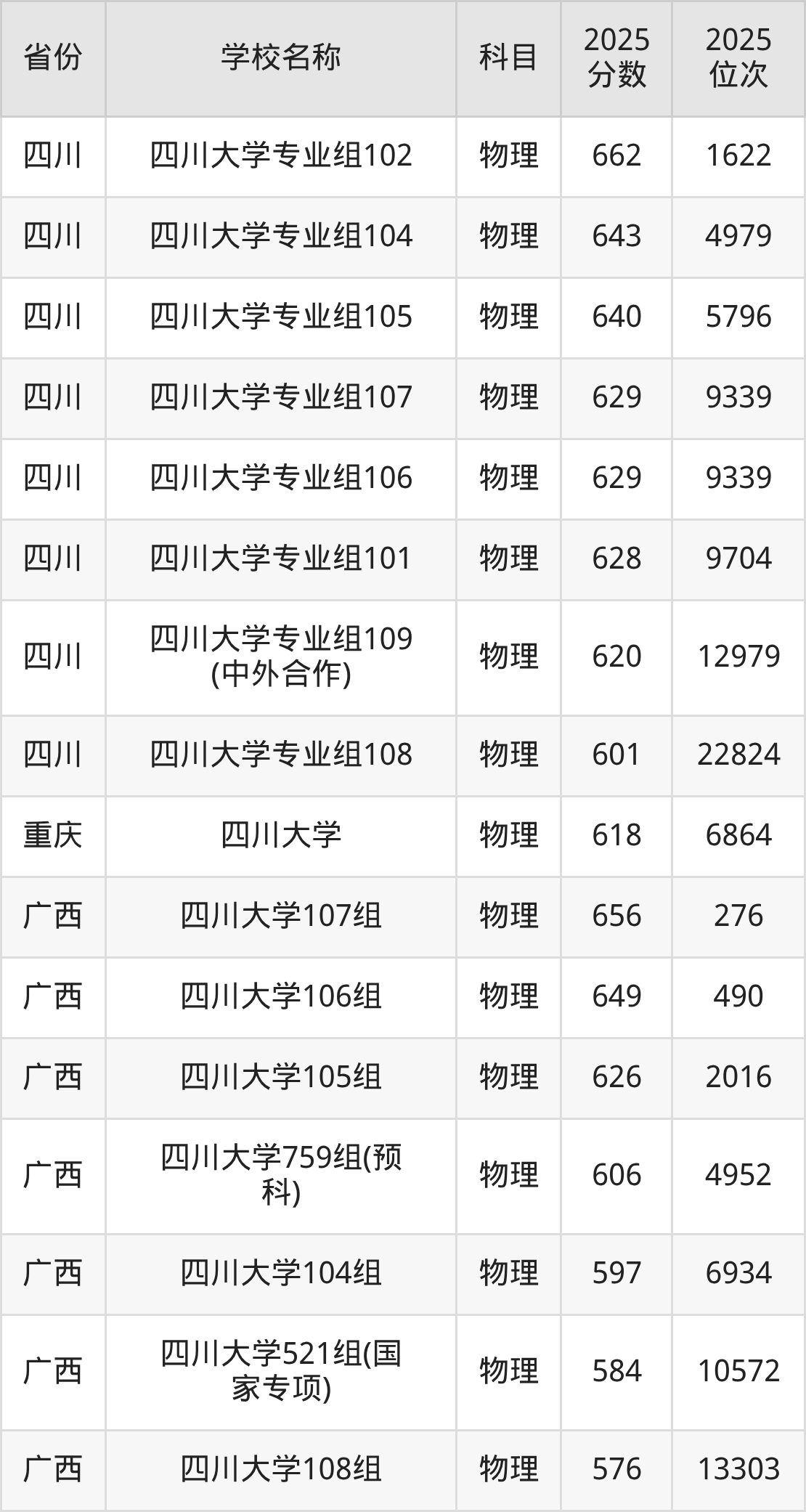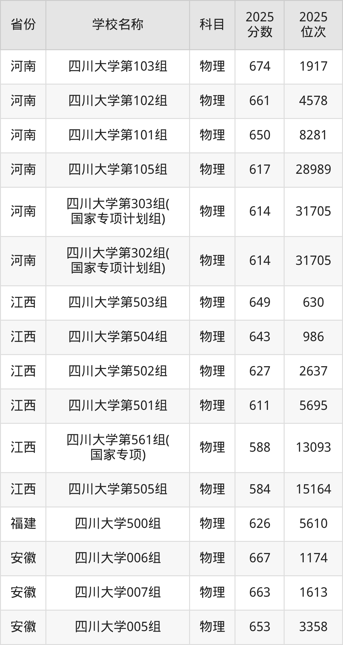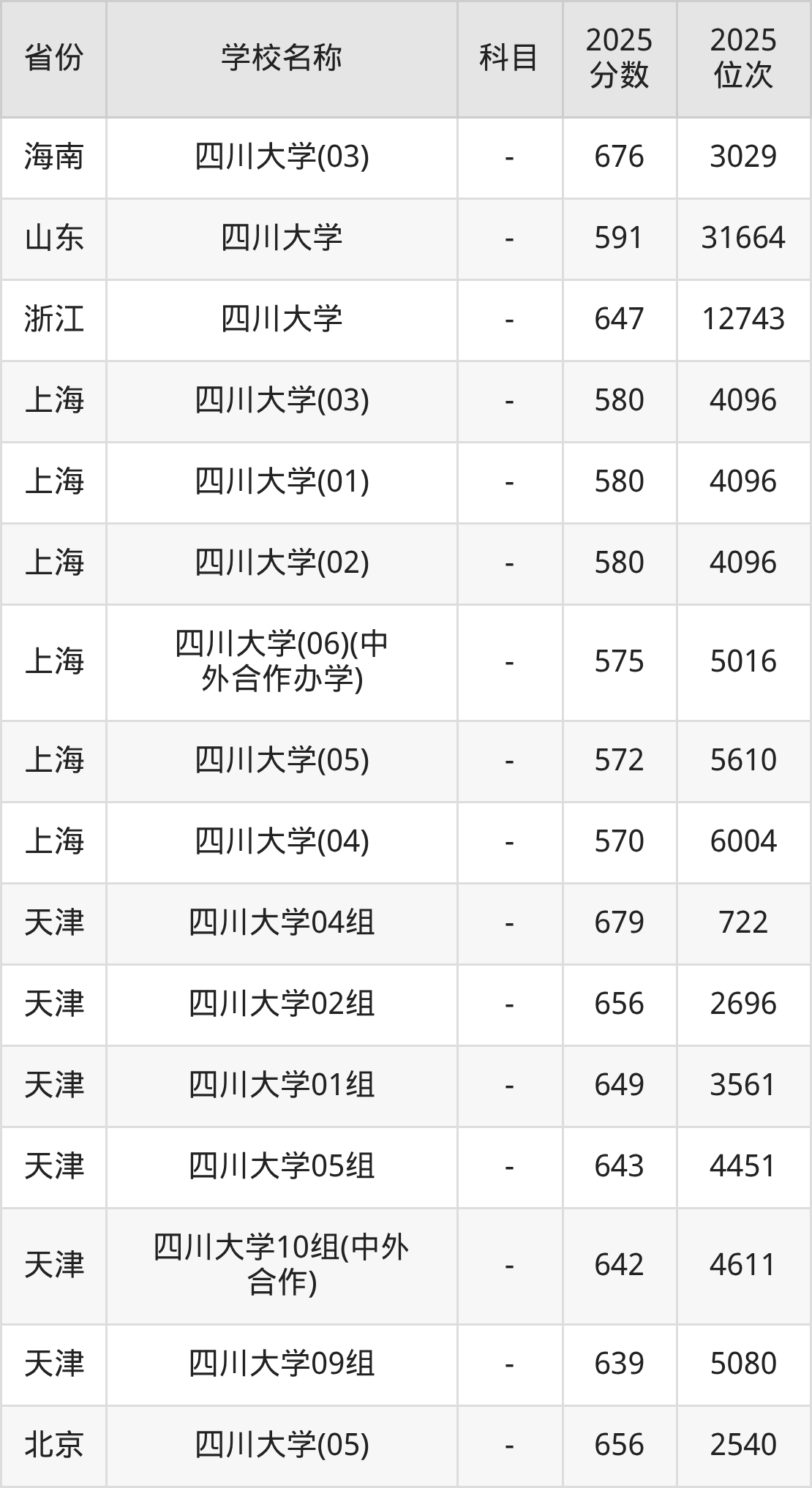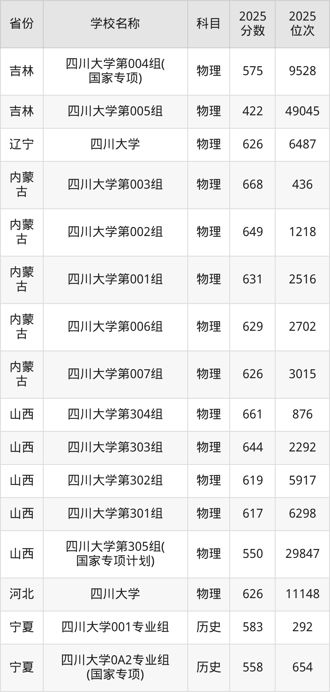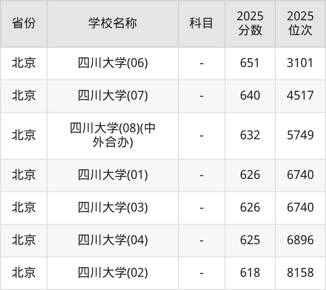 二、四川大学各专业录取分数线
