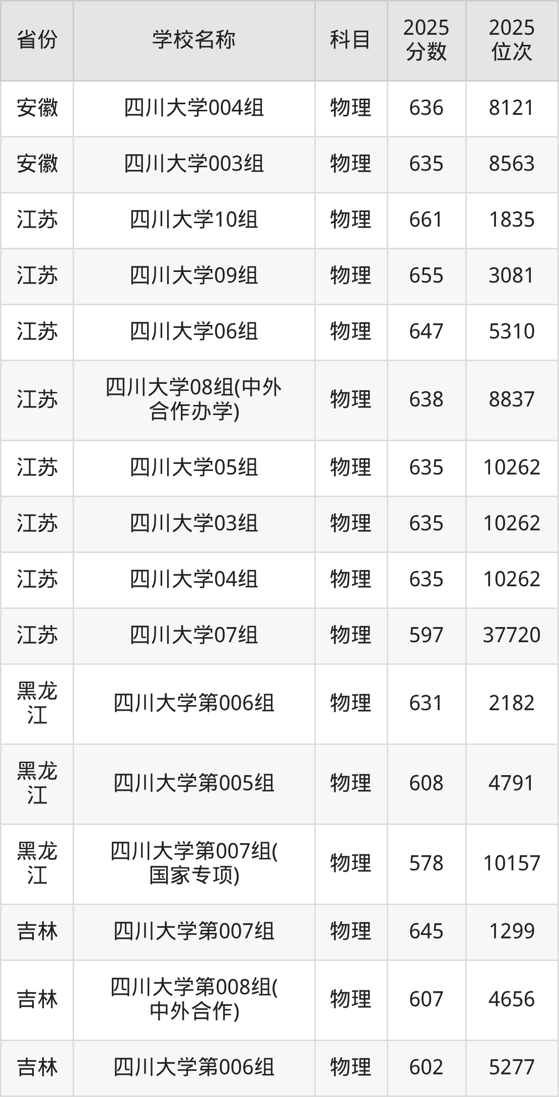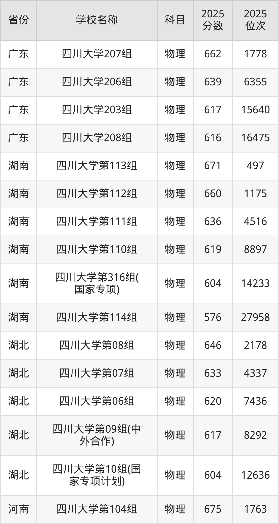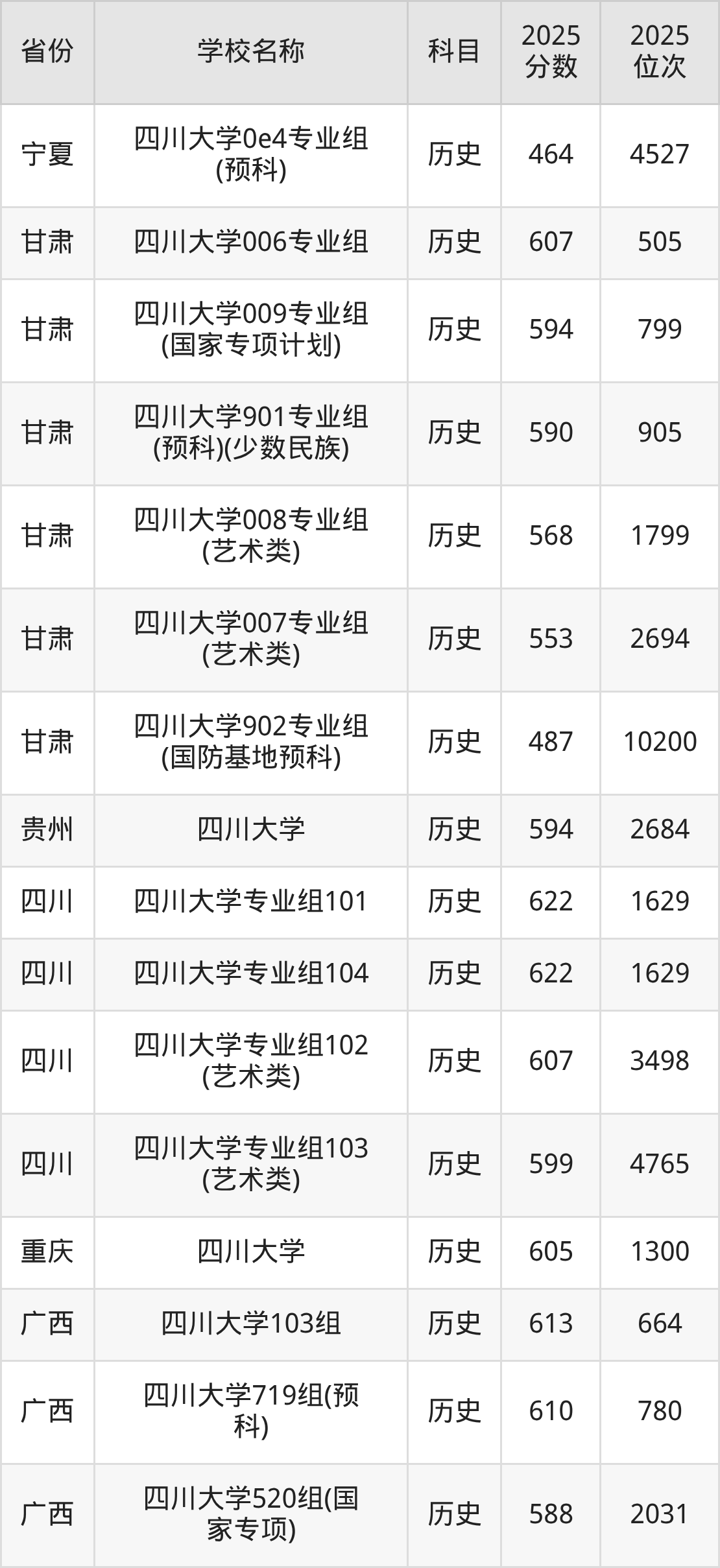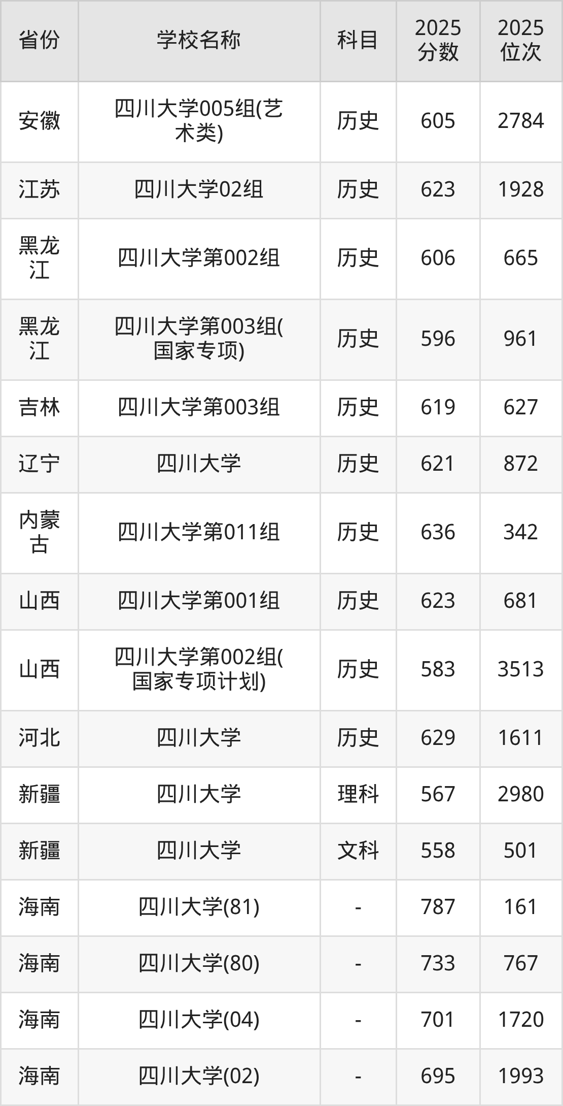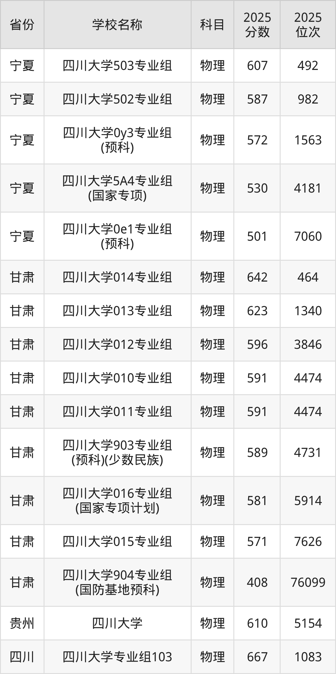 二、四川大学各专业录取分数线