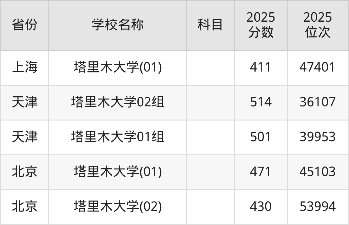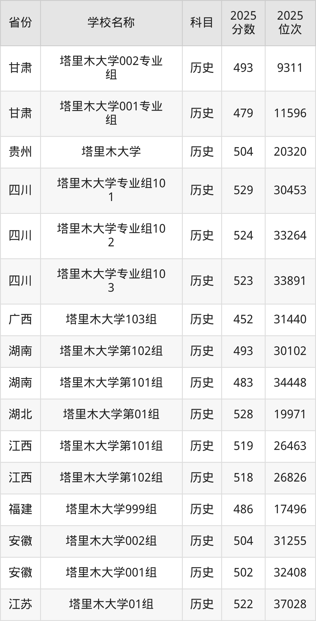 可见,塔里木大学的不同科目,在“招生专业、录取分数线”等方面有较大区别。不同科目组之间的分数线差距高达38分。