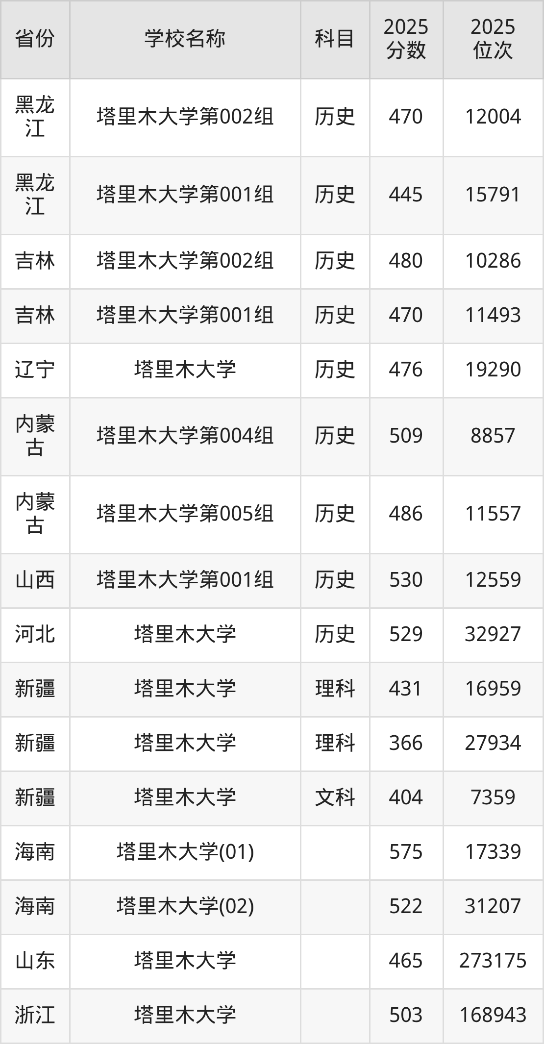 2025年塔里木大学在全国各省本科的最低录取分数线在366~575分之间。海南高考生最低575分能上塔里木大学、天津高考生最低514分能上塔里木大学……下文将展示塔里木大学在全国26个高考省份中的本科最低投档录取分汇总!