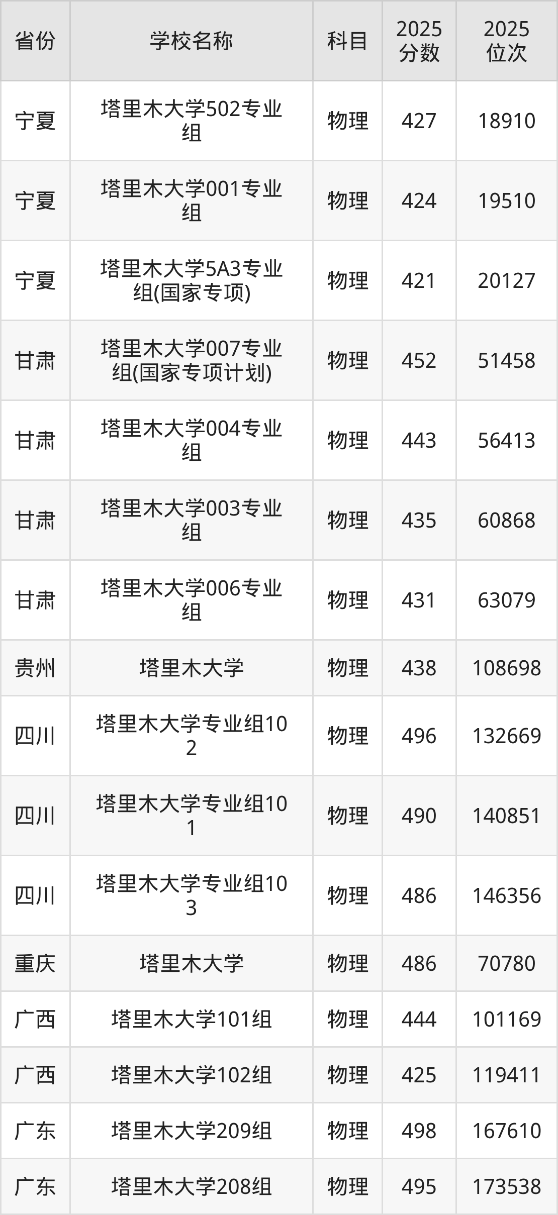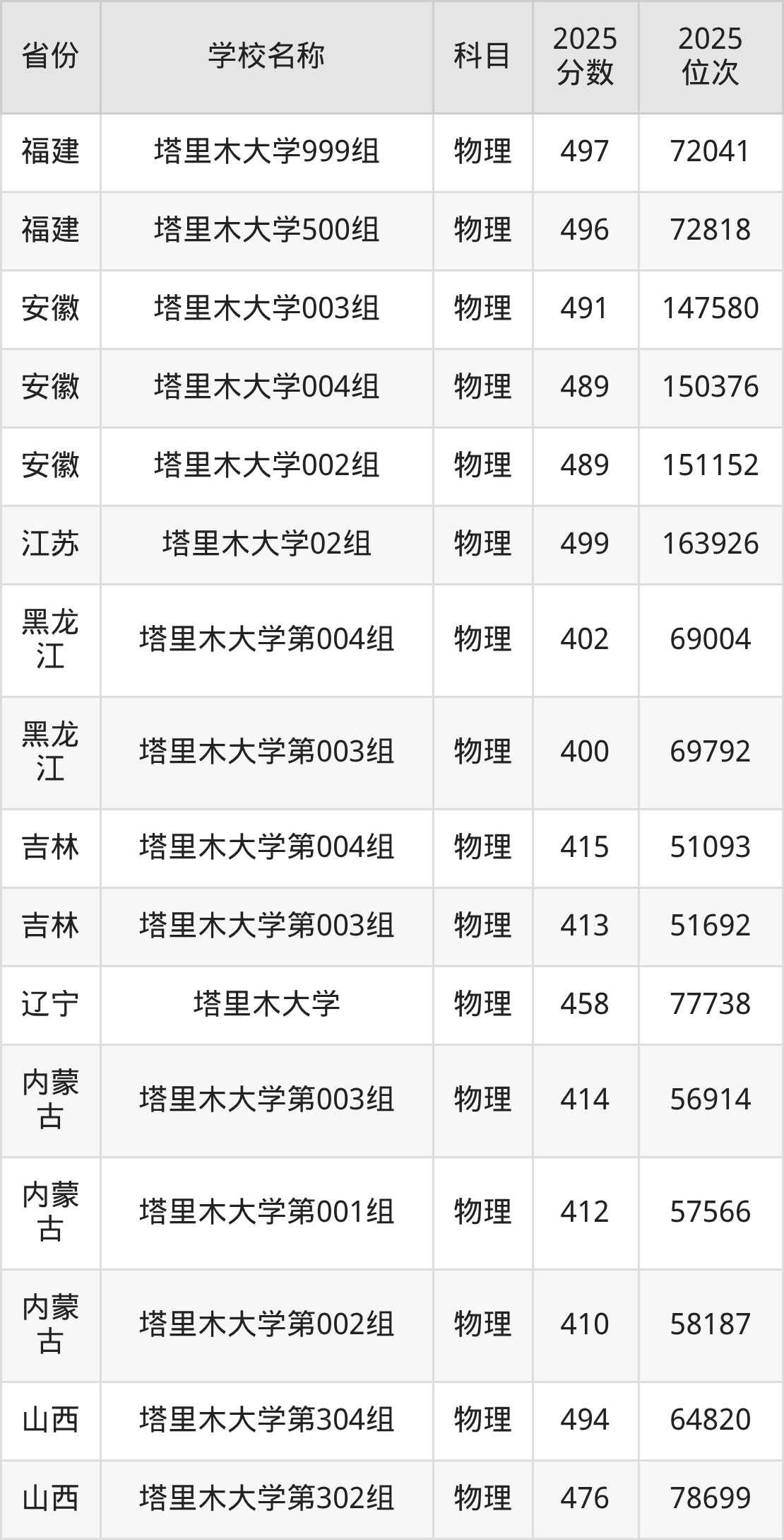 44、物理学专业:2025年最低369分、最低位次是27457