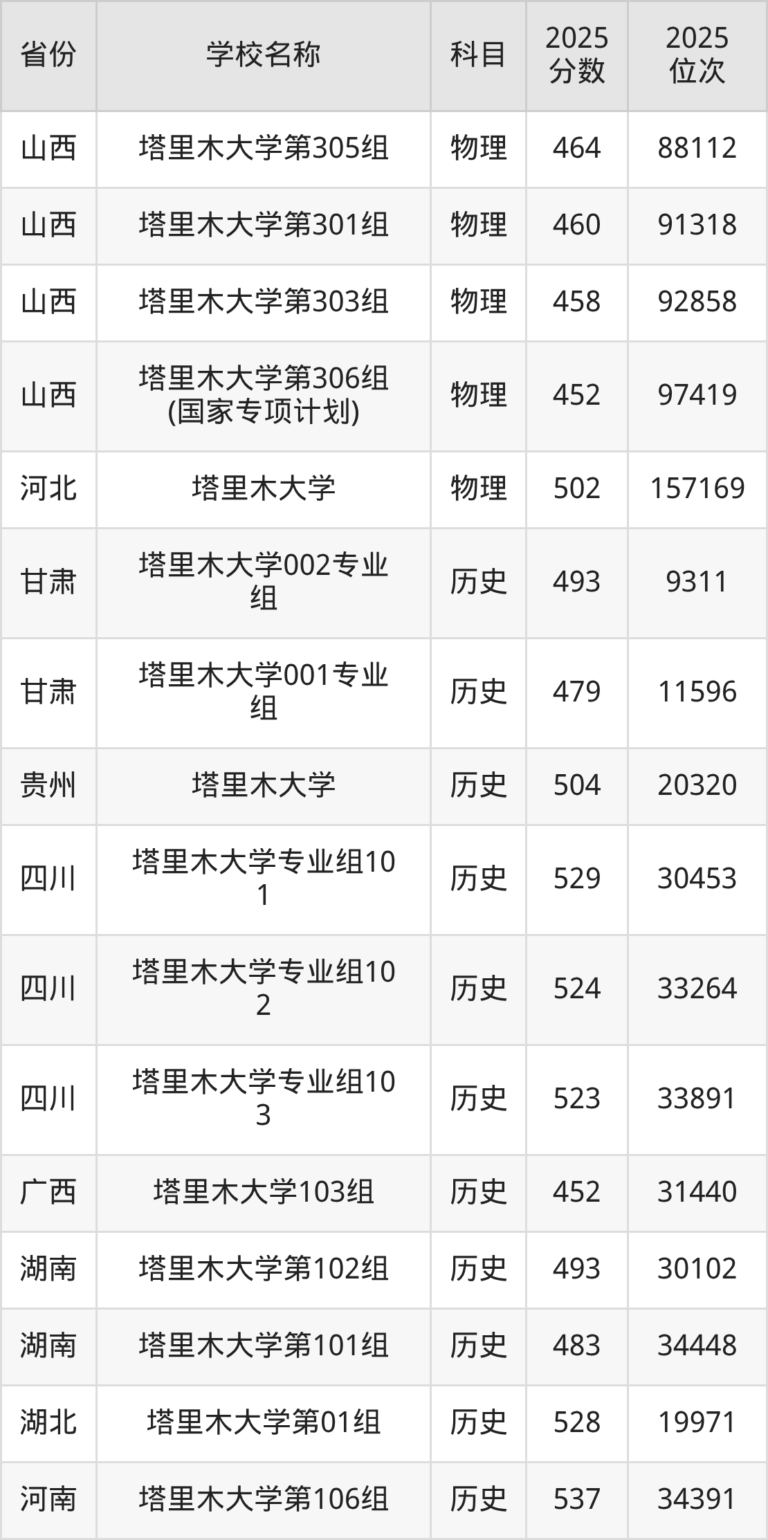 一、2025塔里木大学录取分数线