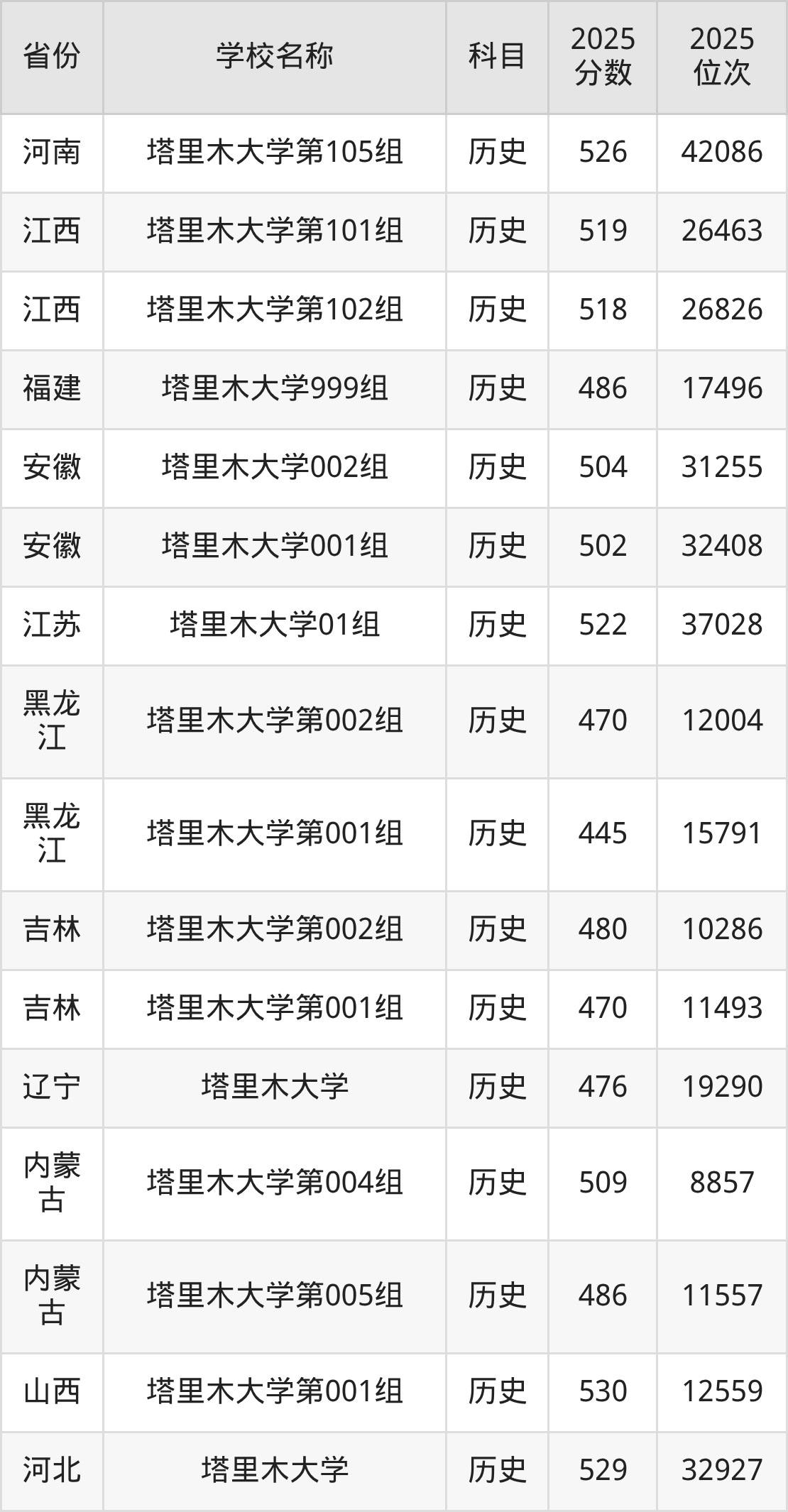 二、塔里木大学各专业录取分数线