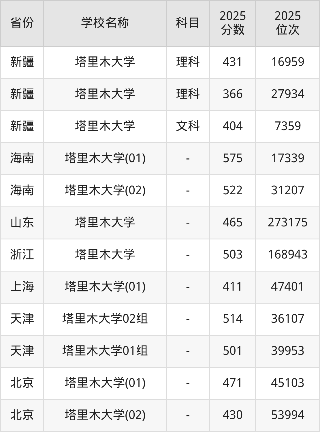 2025年塔里木大学在全国各省本科的最低录取分数线在366~575分之间。海南高考生最低575分能上塔里木大学、河南物理类高考生最低550分能上塔里木大学……下文将展示塔里木大学在全国27个高考省份中的本科最低投档录取分汇总!