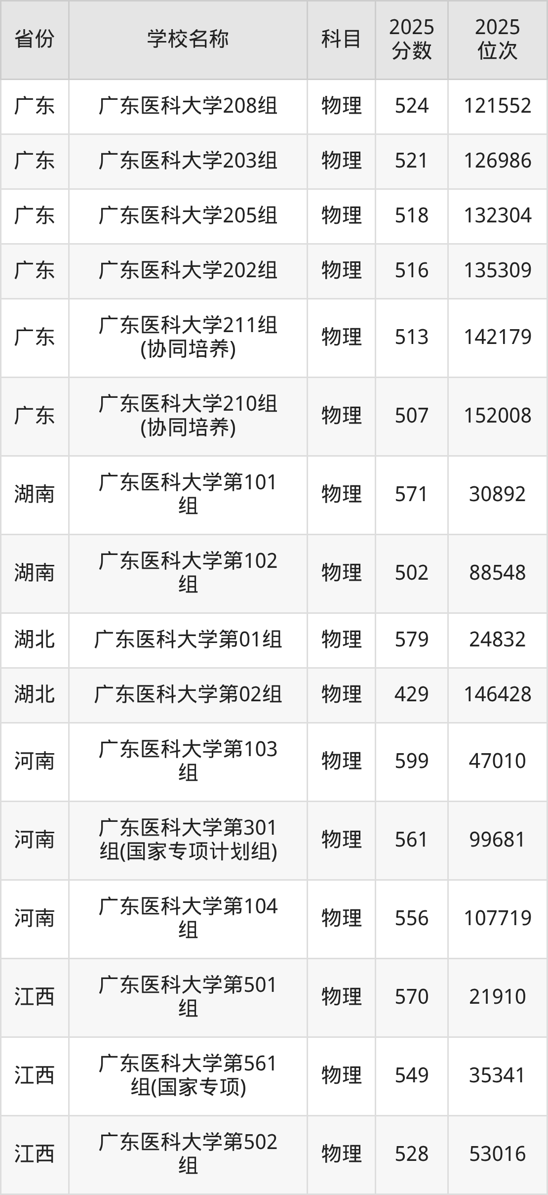 广东医科大学2025年有32个专业组面向广东省内首选了物理科目的考生招生: