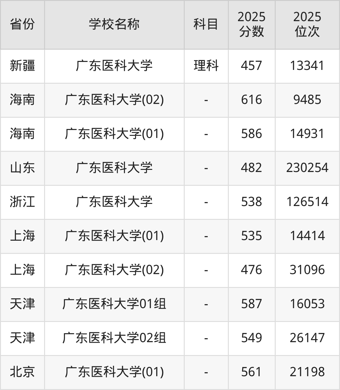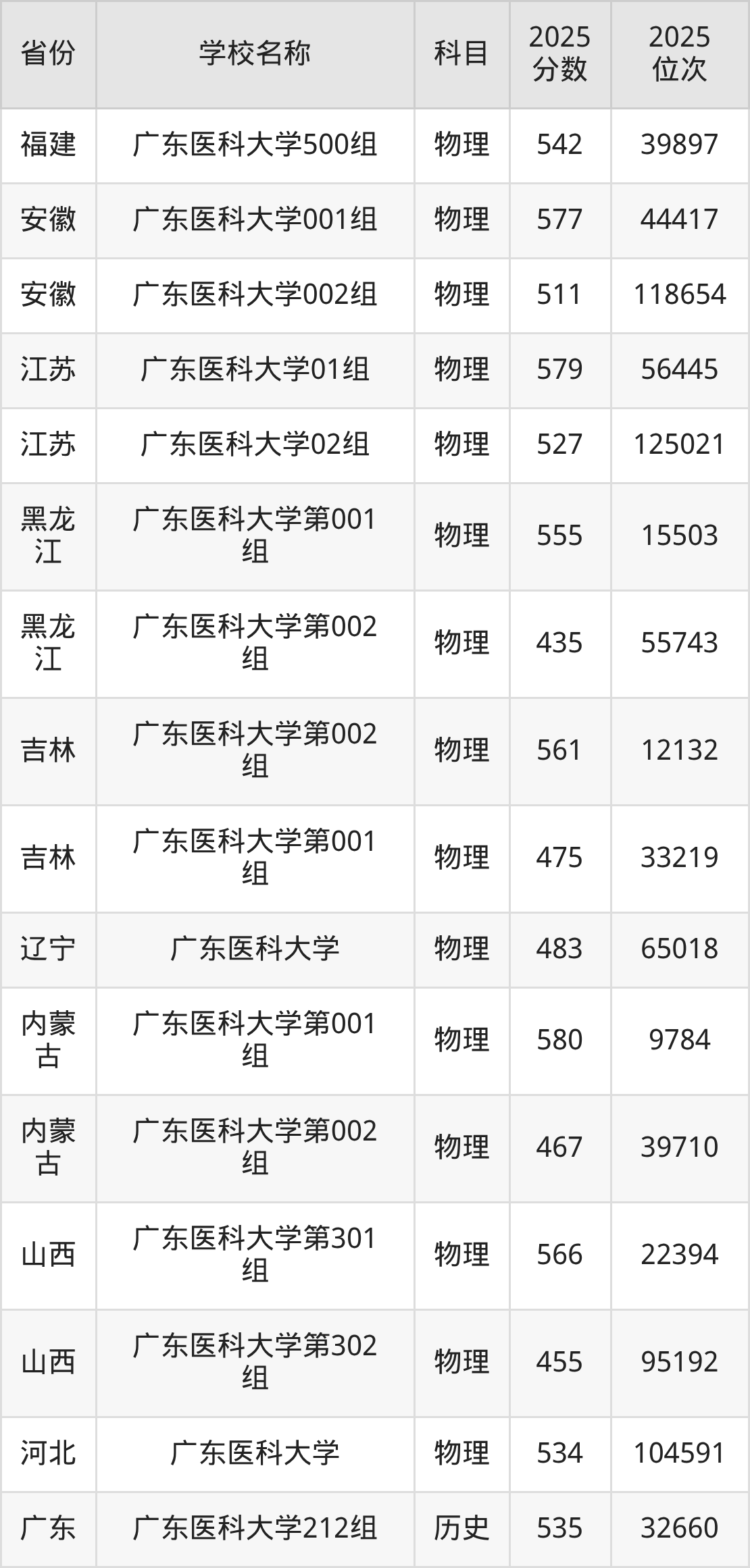一、2025广东医科大学录取分数线