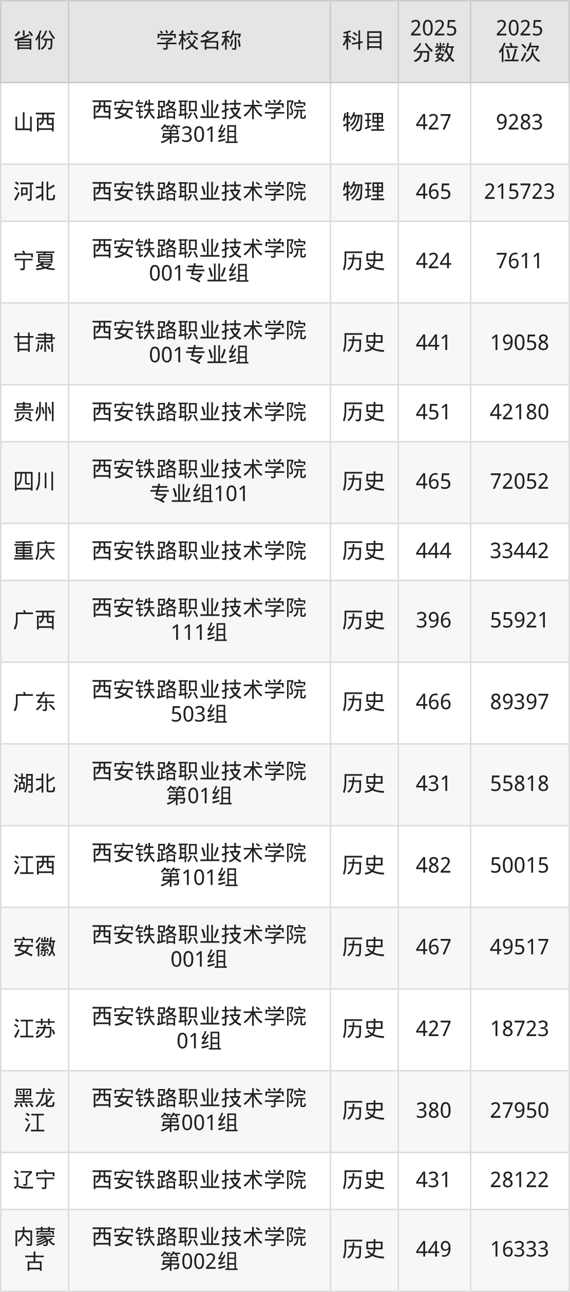 二、西安铁路职业技术学院各专业录取分数线
