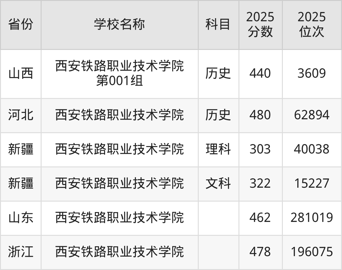 一、2025西安铁路职业技术学院录取分数线