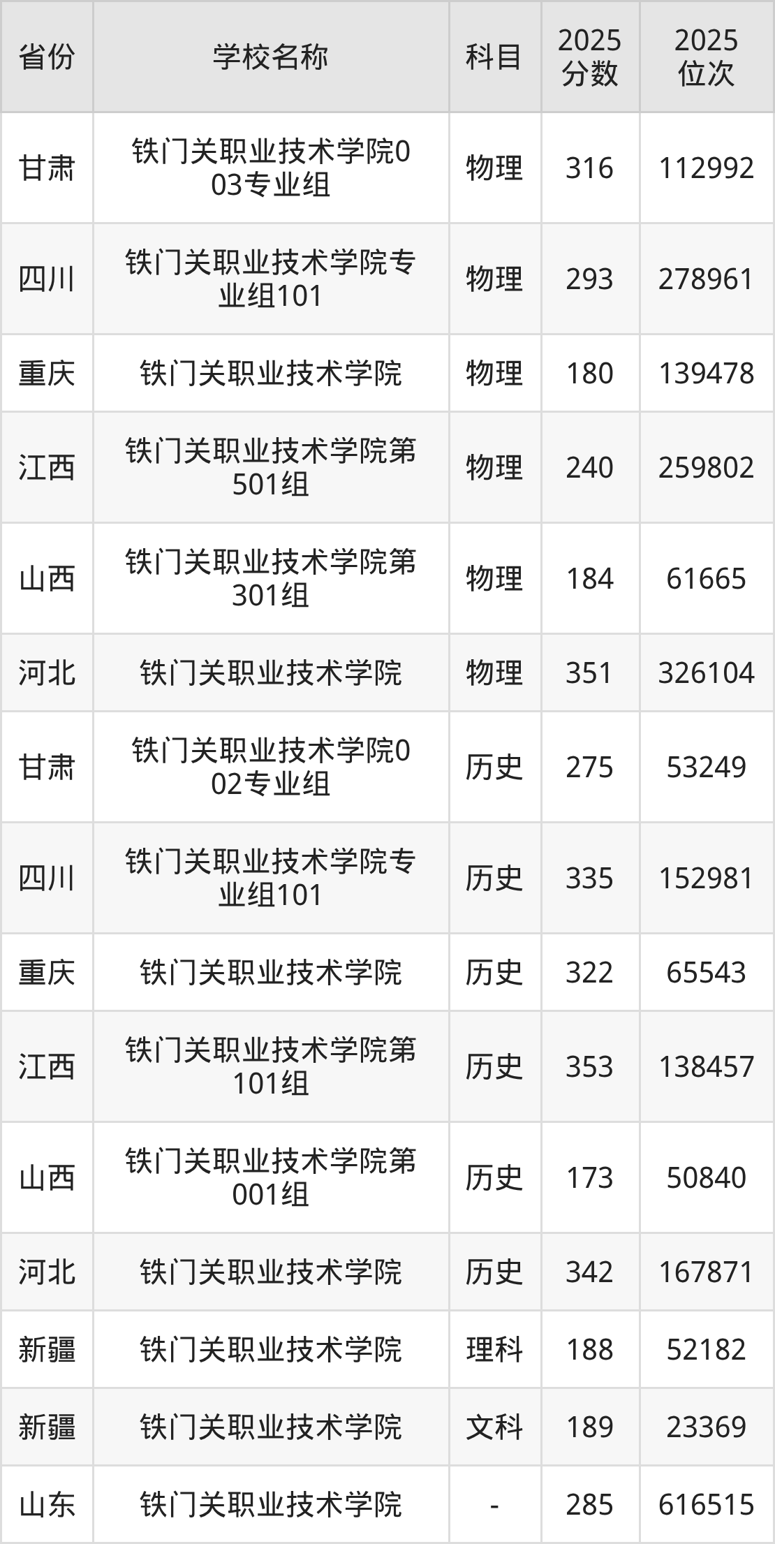 可见,铁门关职业技术学院的不同科目,在“招生专业、录取分数线”等方面有较大区别。不同科目组之间的分数线差距高达1分。