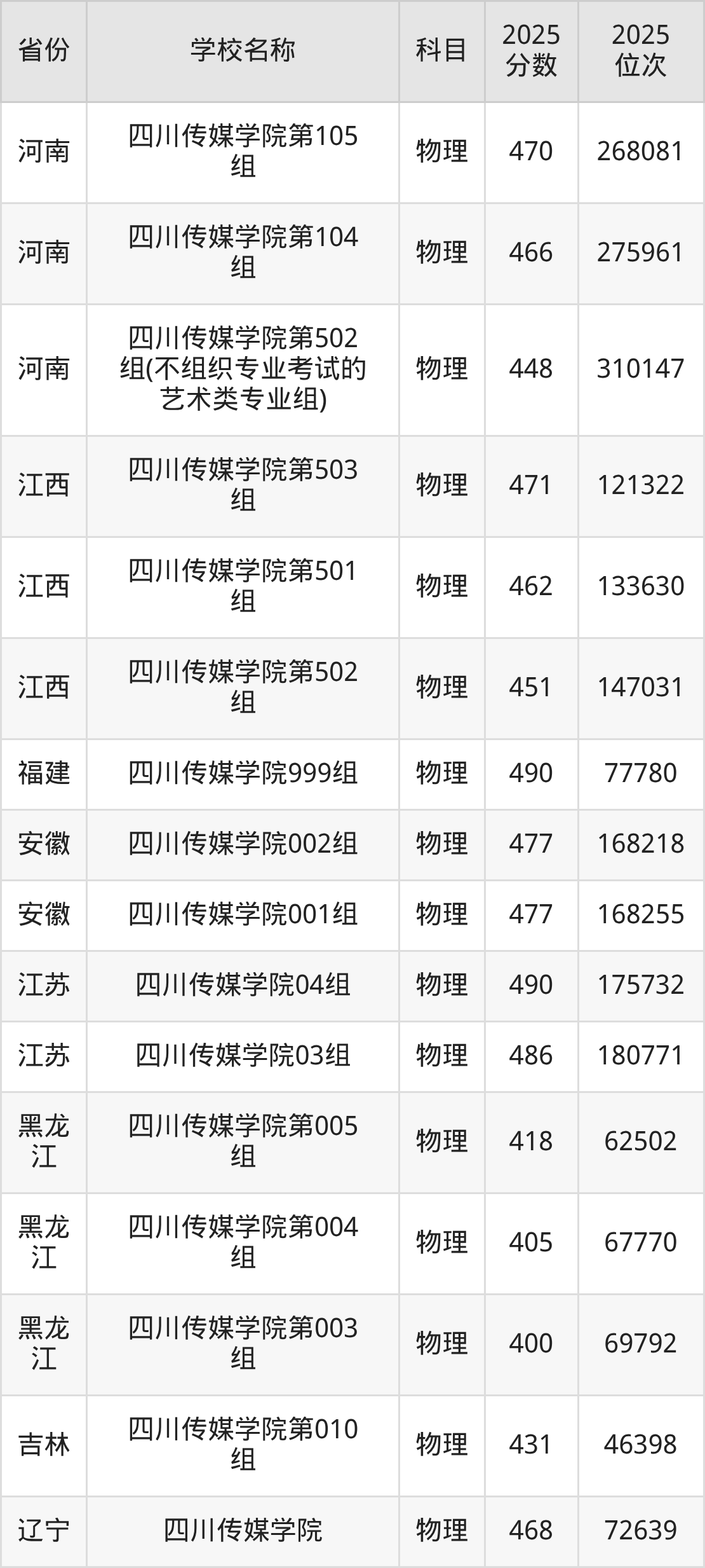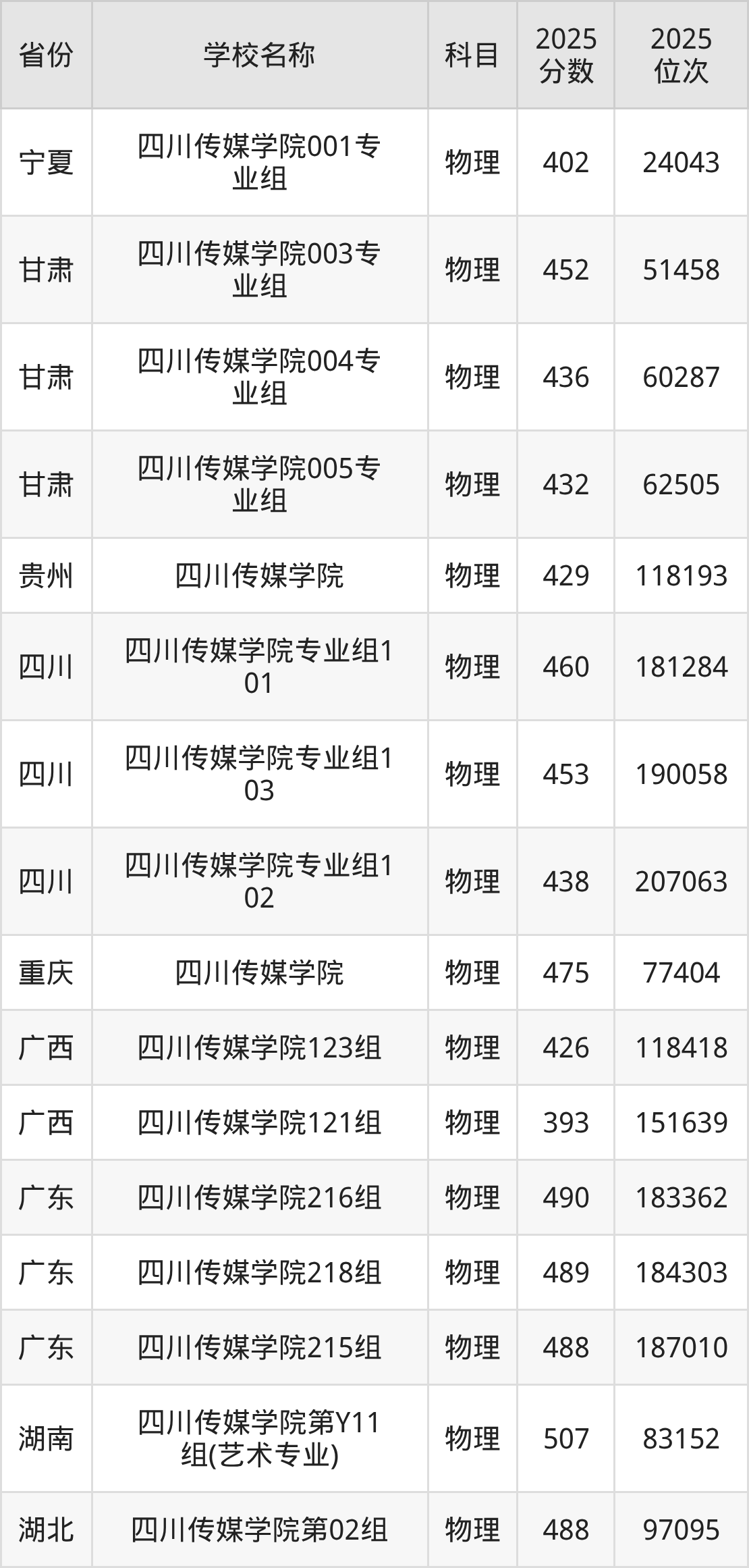 四川传媒学院2025年有3个专业组面向四川省内首选了物理科目的考生招生: