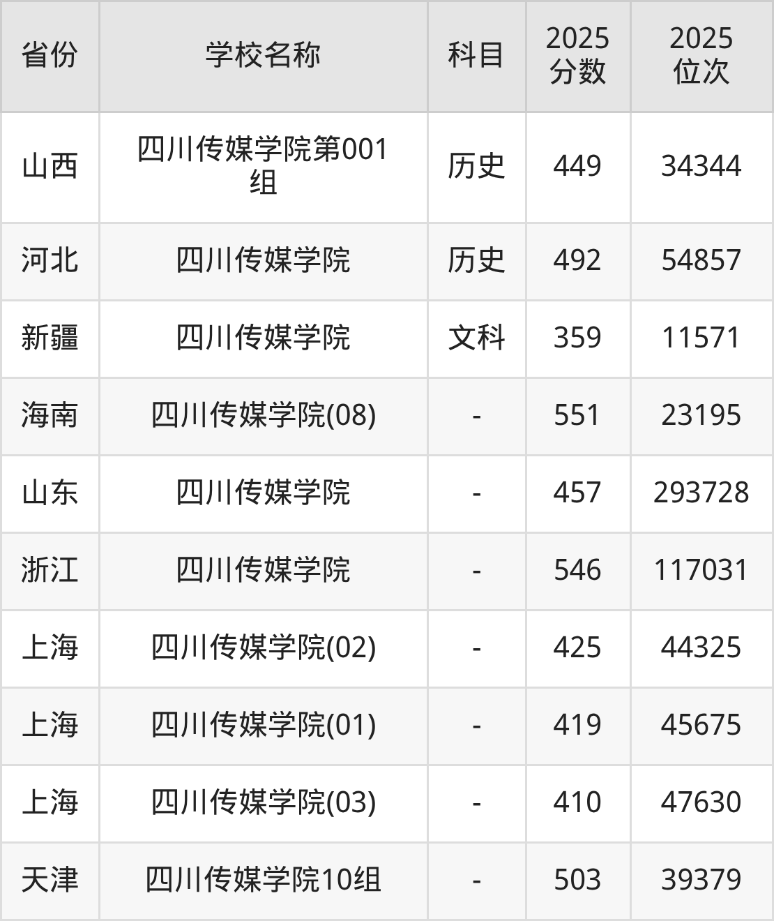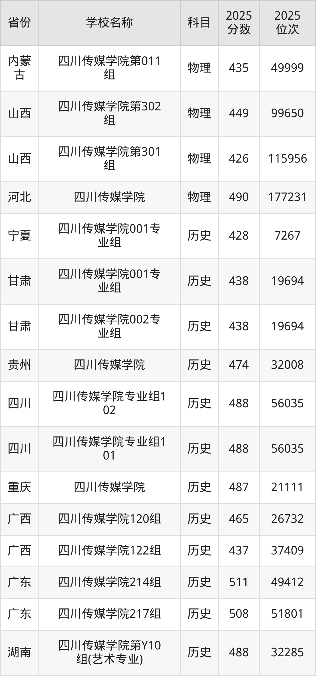 一、2025四川传媒学院录取分数线